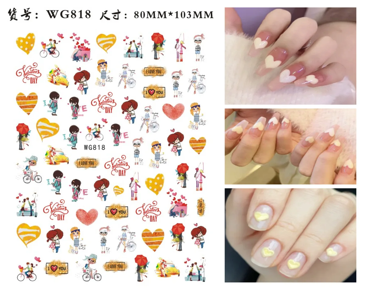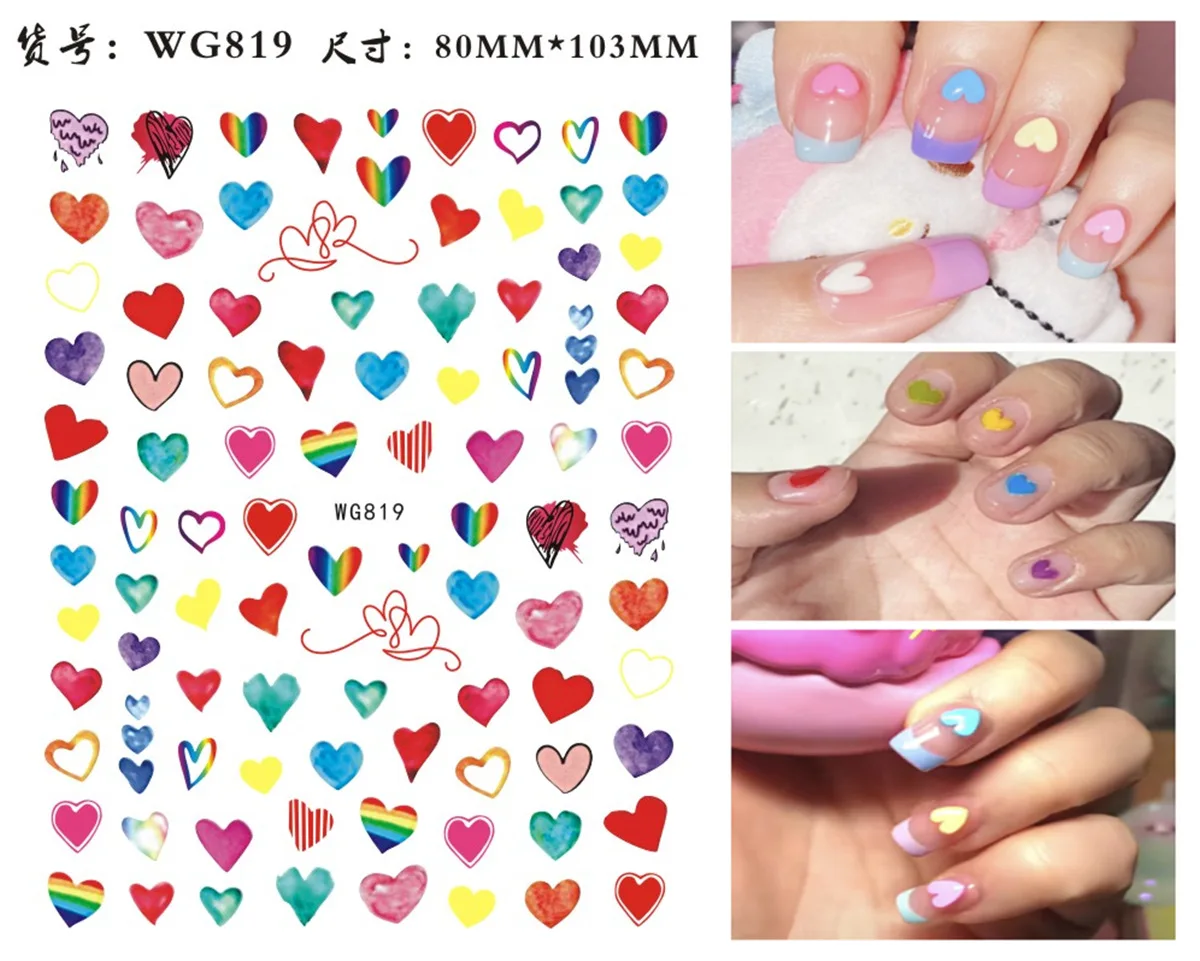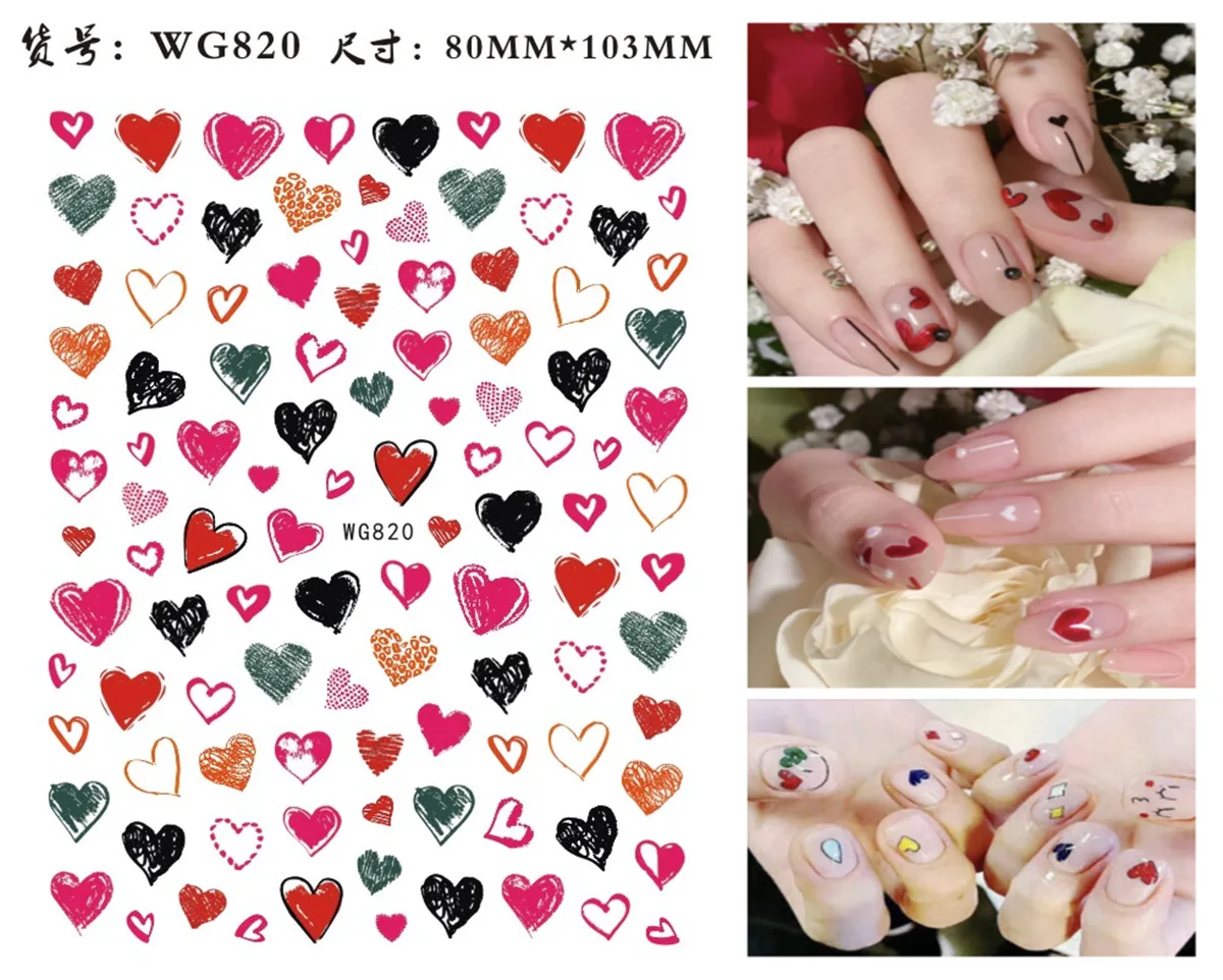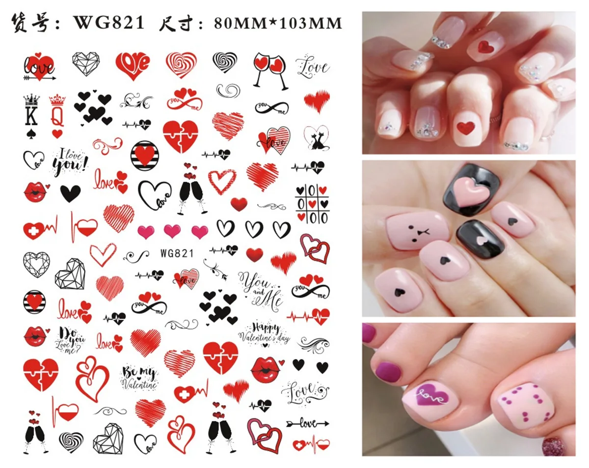 1 лист 3D наклеек для ногтей, черное сердце, любовь, самоклеящиеся слайдеры, искусственные цветы, лист, переводные наклейки, украшение для ногтевого дизайна