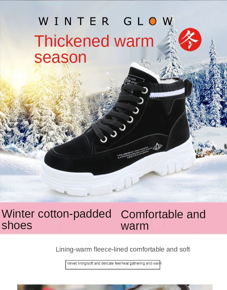 Женские зимние кроссовки из 2021 хлопка, плюшевые теплые кроссовки на толстой подошве, повседневная женская обувь на платформе, зимняя обувь