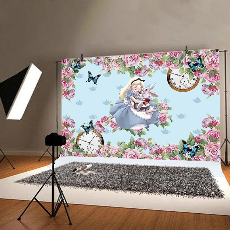 Фон для фотографий Алиса в стране чудес мультяшный цветок для вечеринки в честь Дня рождения для девочек фон для фотографирования баннер декорация для фотосессии