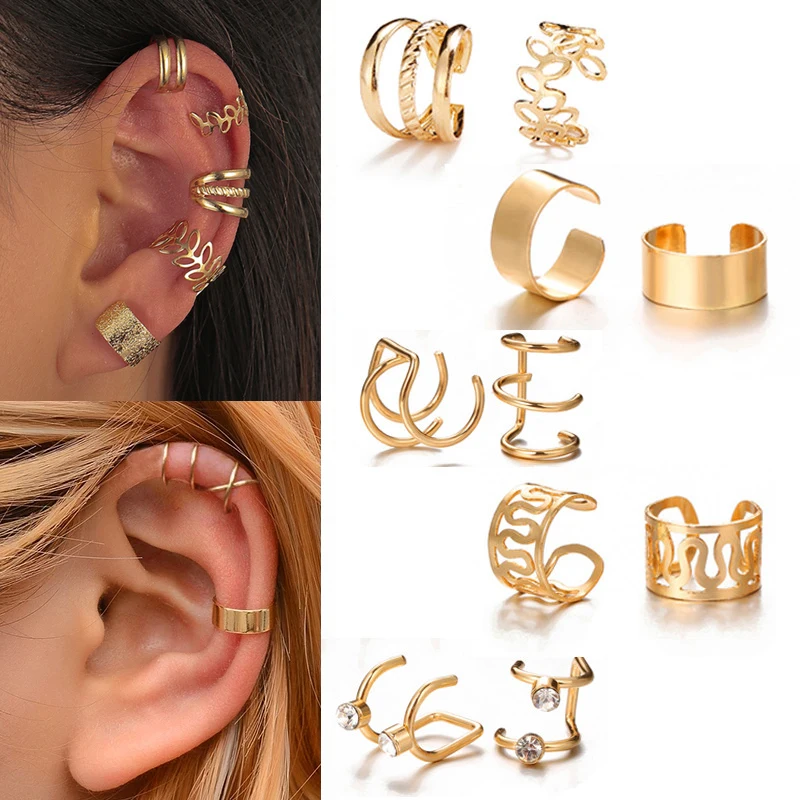 12 шт. Кафф для ушей, золотые клипсы для ушей без пирсинга, поддель...