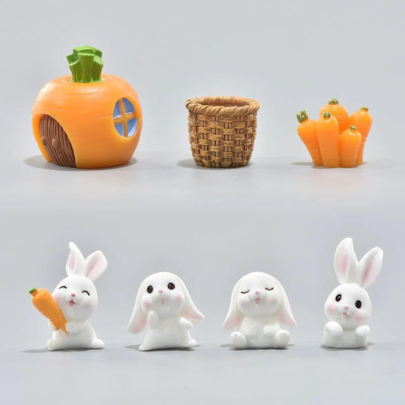 Аквариум, искусственное украшение бонсай, маленькие милые животные, мультяшный кролик, украшение, морковь, кролик, Домашние Растения