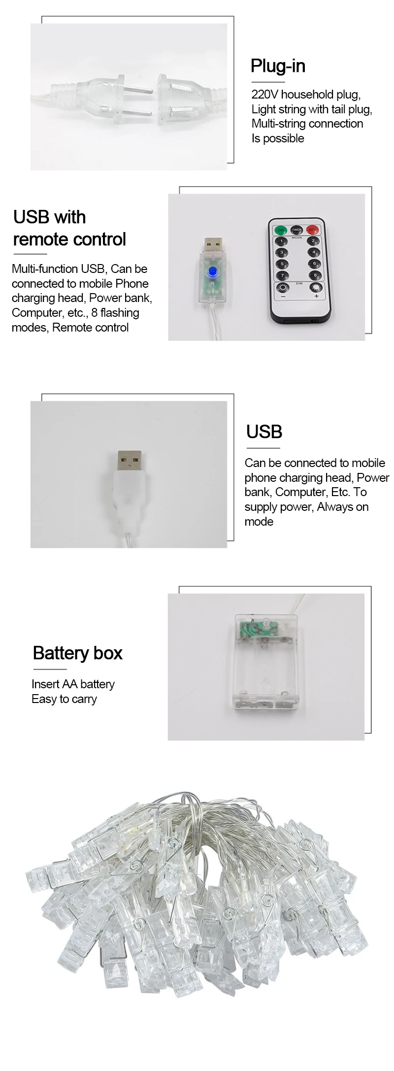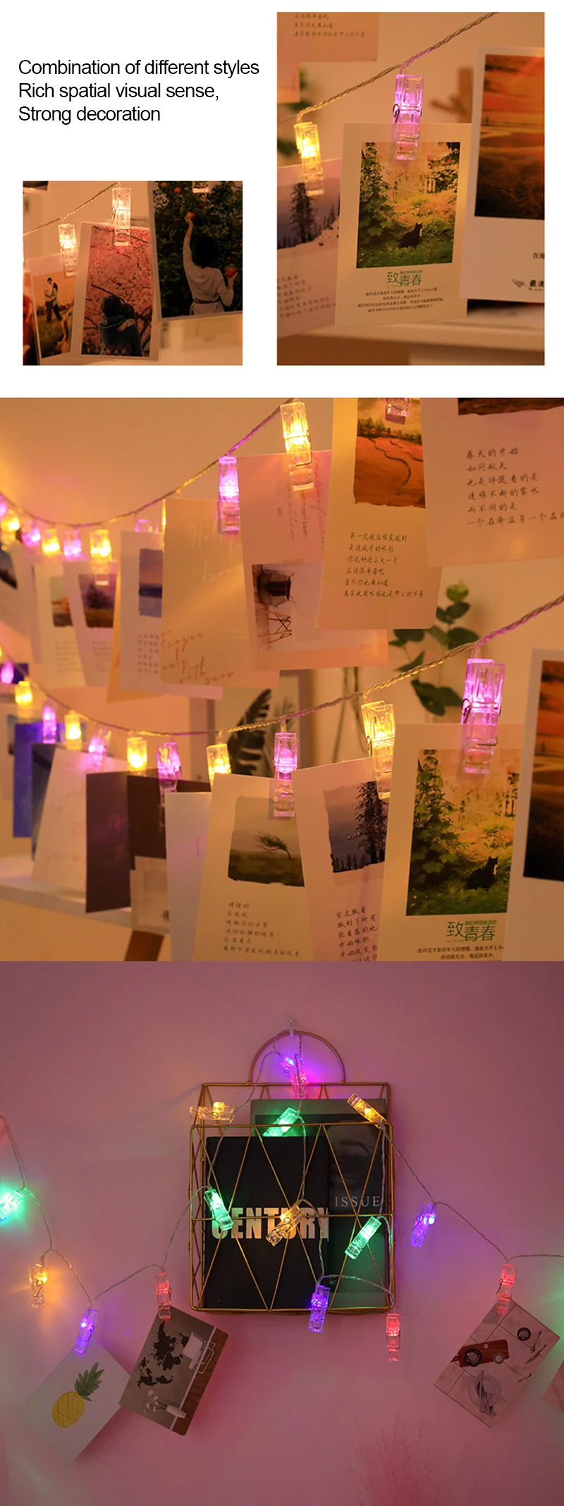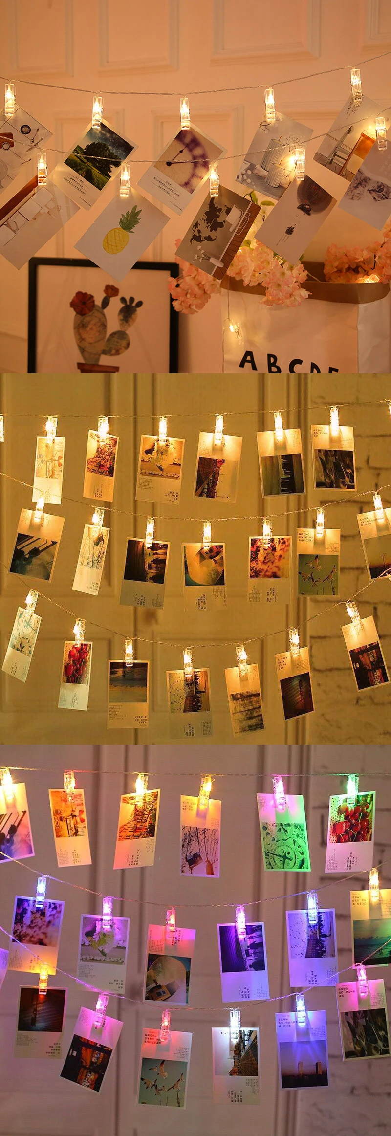 СВЕТОДИОДНАЯ Гирлянда для фотографий, светильник с зажимом, USB-питание от батарейки, настенное украшение, подвесной светильник, украшение для рождественской вечеринки