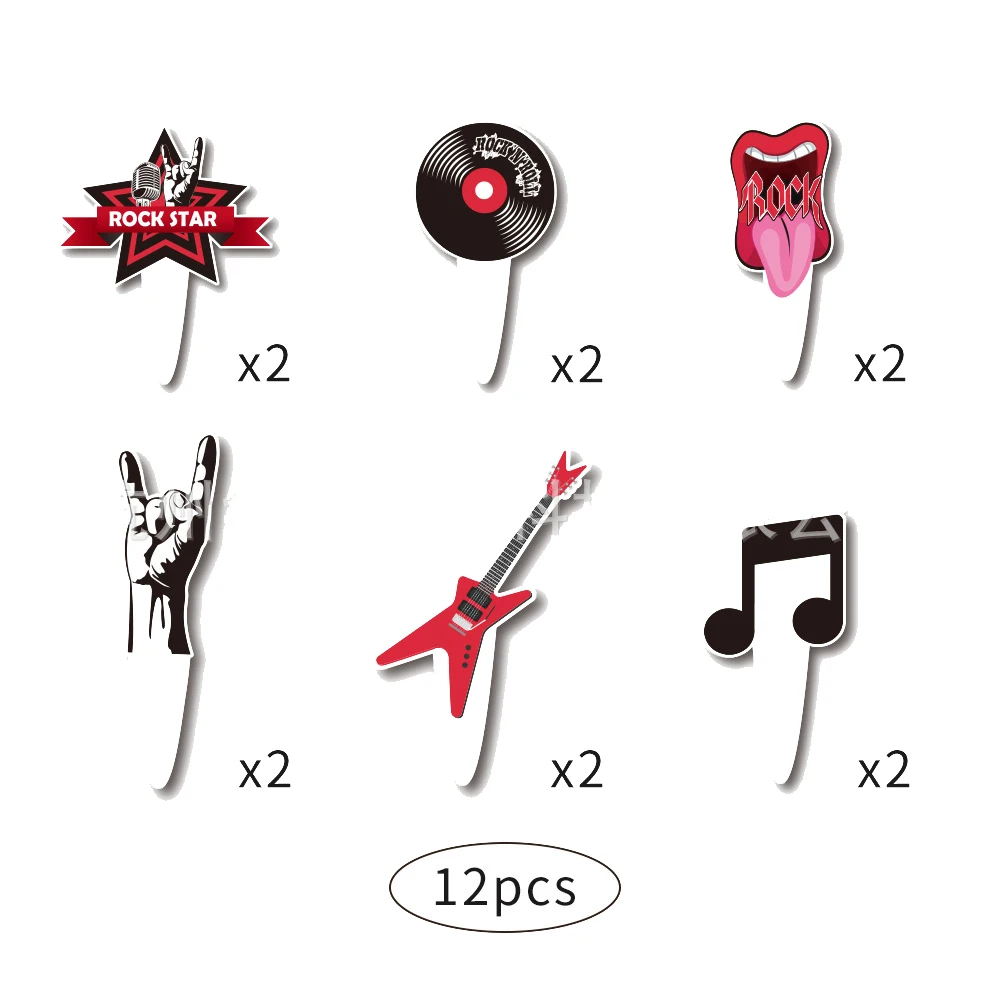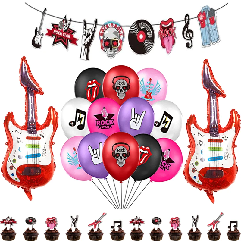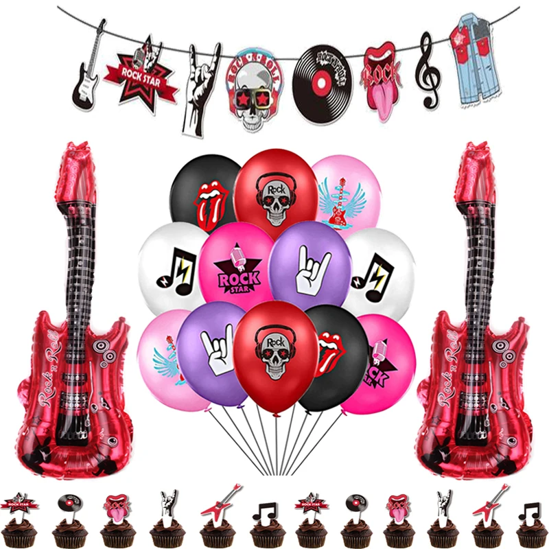 Рок-н-ролл воздушные шары видео диско Note гитарный ленточный микрофон с днем рождения баннер украшение для вечеринки Музыка Радио торт Топпер