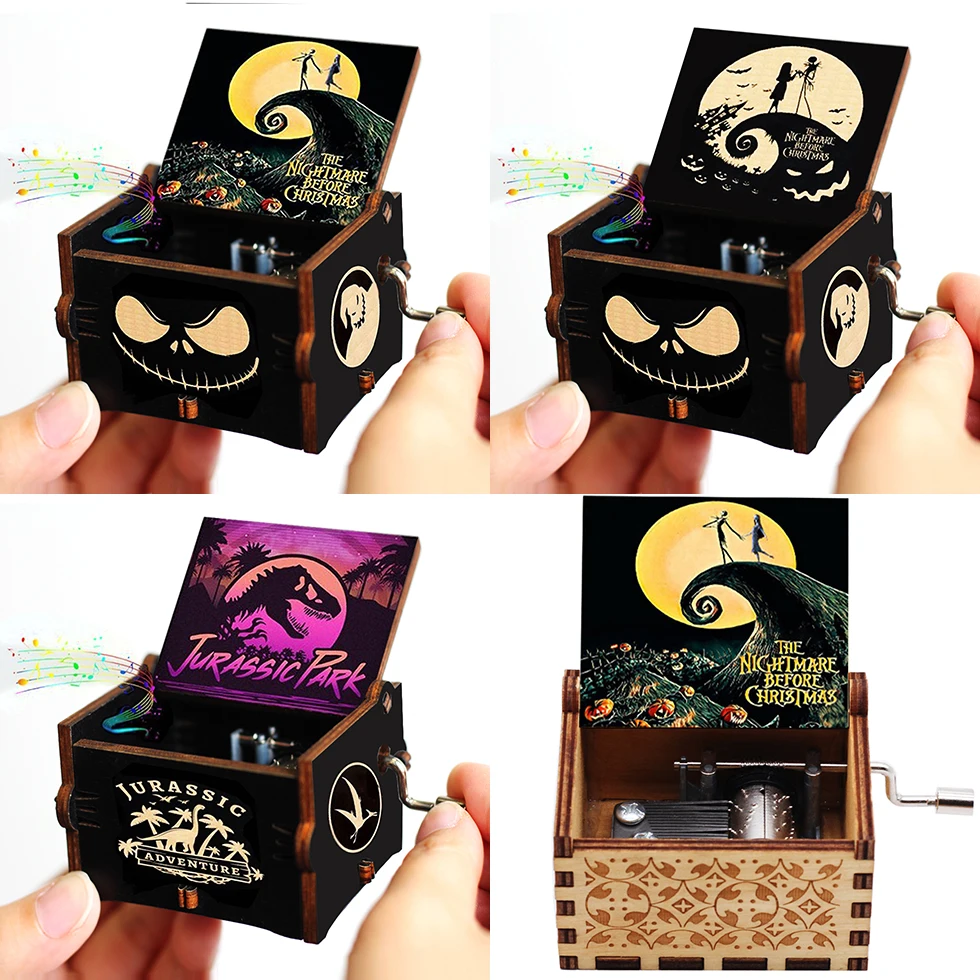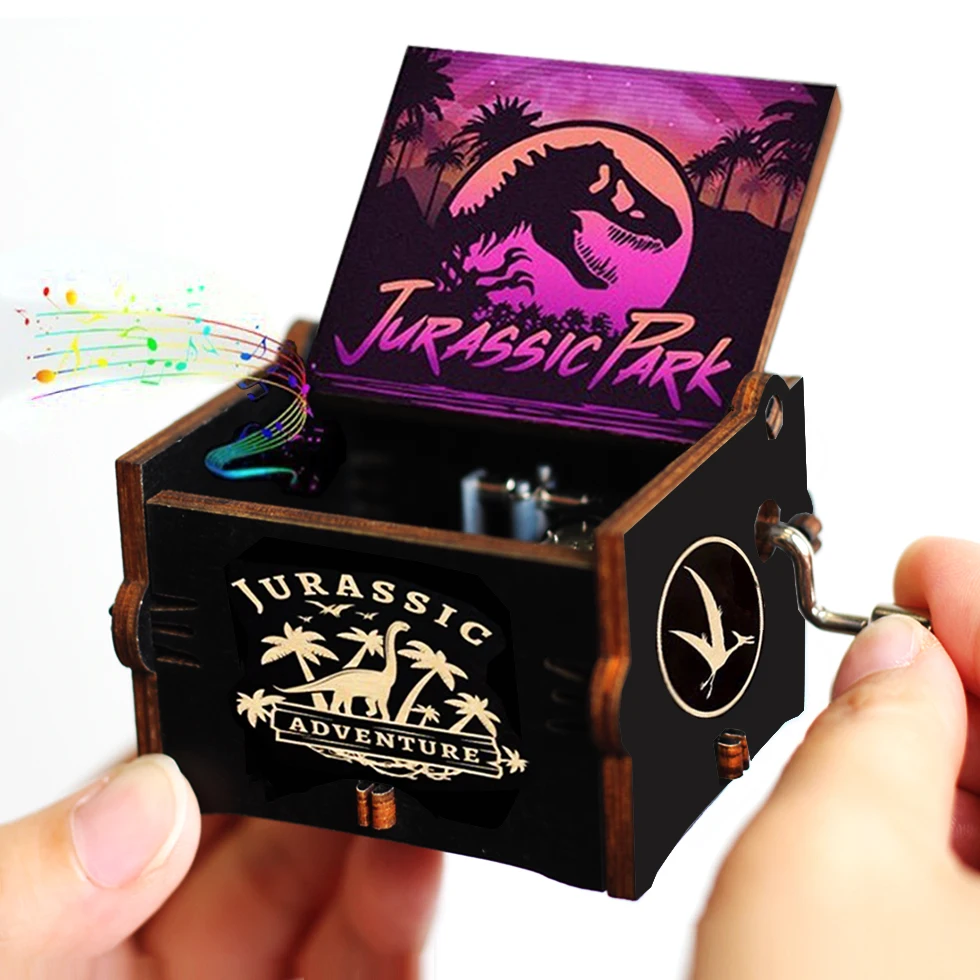 Хит продаж музыкальная шкатулка Парк Юрского периода, Музыкальная шкатулка с резьбой, деревянная музыкальная шкатулка с рукояткой, подарок на Рождество, день рождения, Хэллоуин, украшение для дома