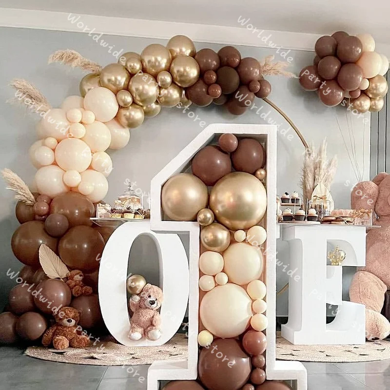 Набор воздушных шаров включает в себя:(113 шт.) Матовый кофе (5 дюймов * 20 шт., 10 дюймов * 30 шт., 18 дюймов * 3) Крем-персик в два раза (5 дюймов * 10 шт., 10 дюймов * 20 шт.) Хромовое золото (5 дюймов * 10 шт., 10 дюймов * 20 шт.) Бесплатно: 1 рулонный клей Цепочка для воздушных шаров, крючок