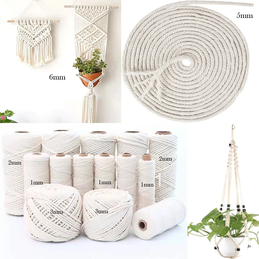 123456 мм 100% натуральный хлопковый шнур для макраме, веревка из хлопка, шнур для рукоделия, шнур для рукоделия, вязание, Свадебный декор 10-400 м