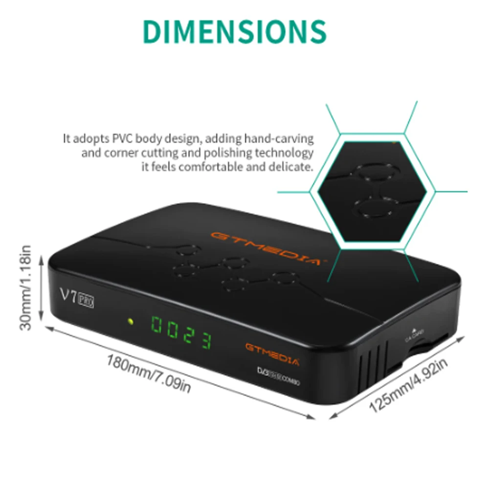 V7 PRO-это новая флагманская модель серии V7, разработанная компанией GTMEIDA в 2020 году. Это продукт нового поколения V7 PLUS. V7PRO поддерживает новейшую систему H.265 HEVC main 10 в Италии, и просмотр прямых программ будет более плавным. Он оснащен слотом для карт CA, который поддерживает большинство смарт-карт, и вы можете избавиться от дорогих машин от поставщиков карт. V7 PRO-лучший выбор для фильмов и ТВ-шоу.