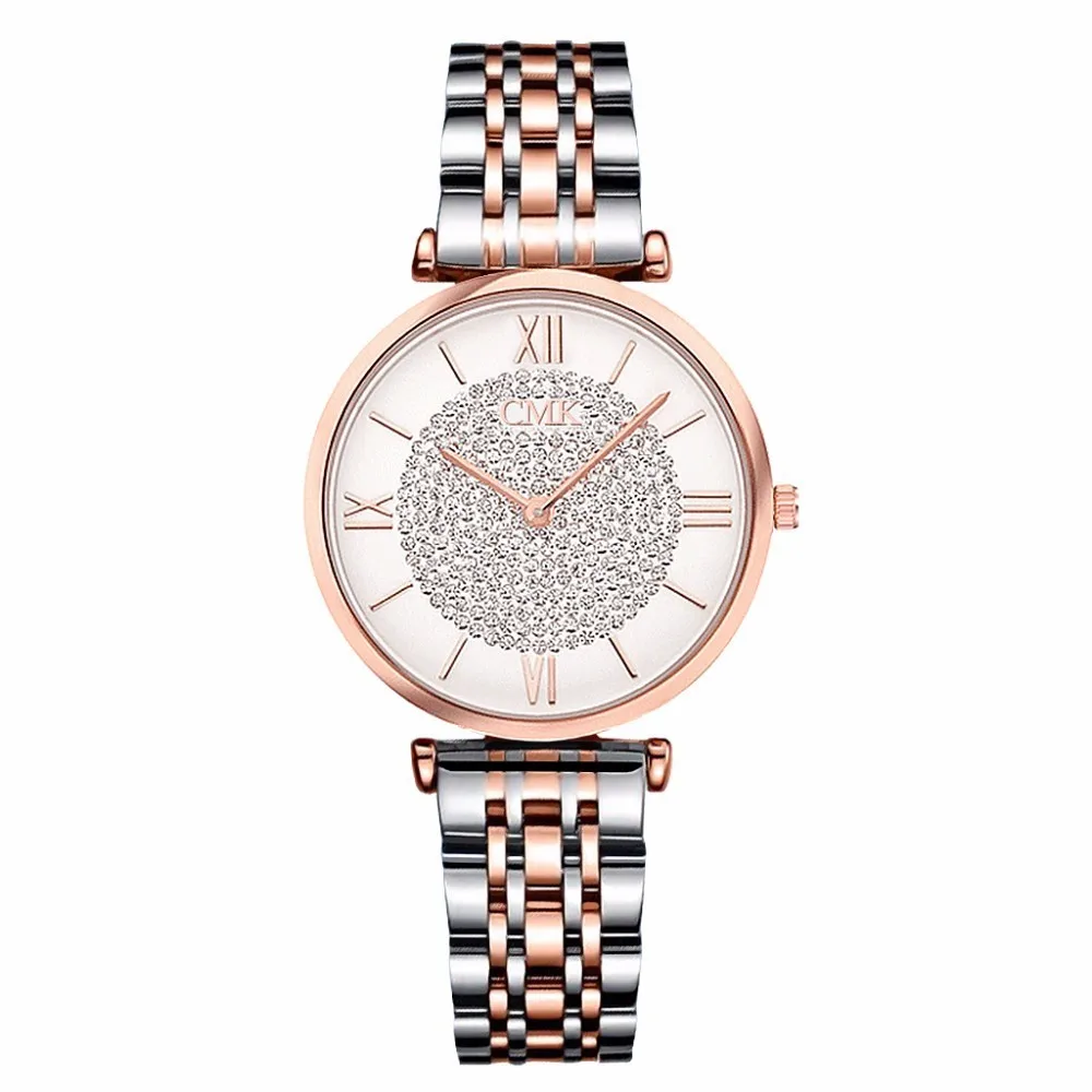 Часы наручные женские кварцевые со стразами, люксовые повседневные, из нержавеющей стали