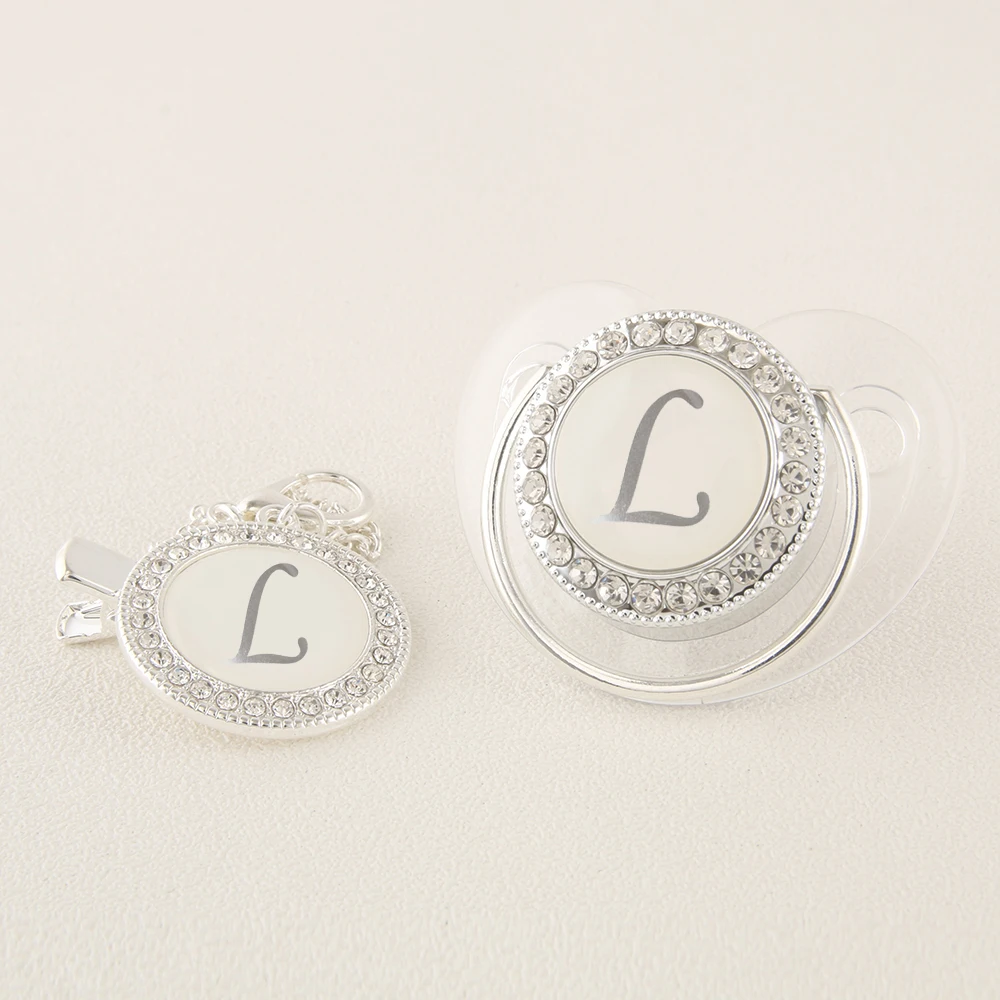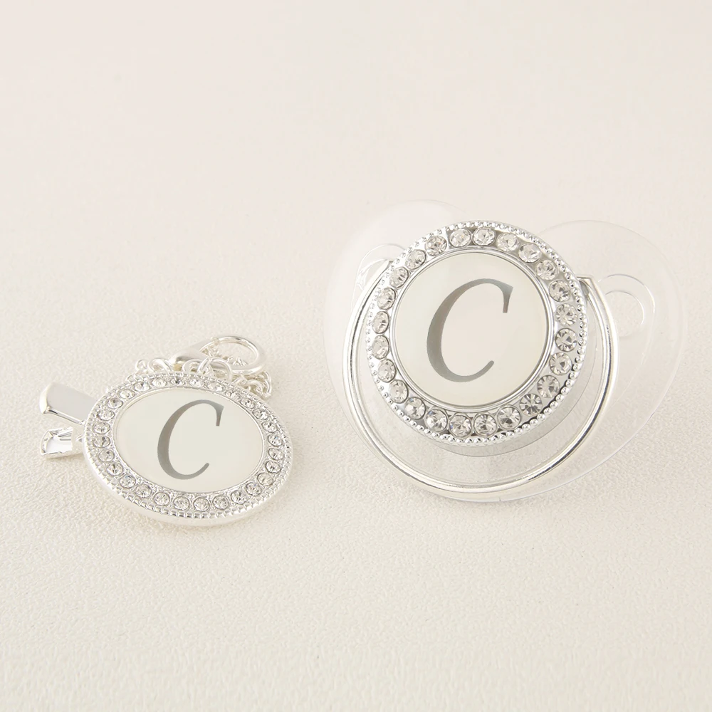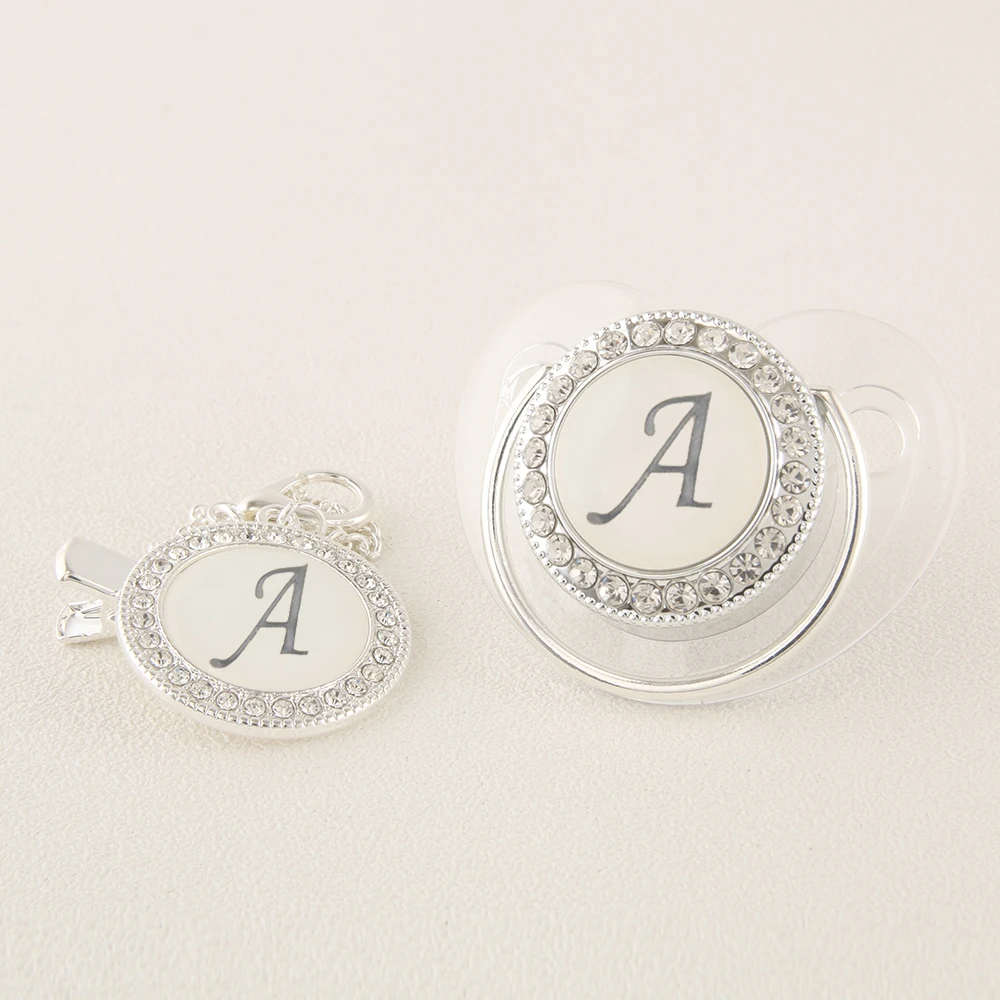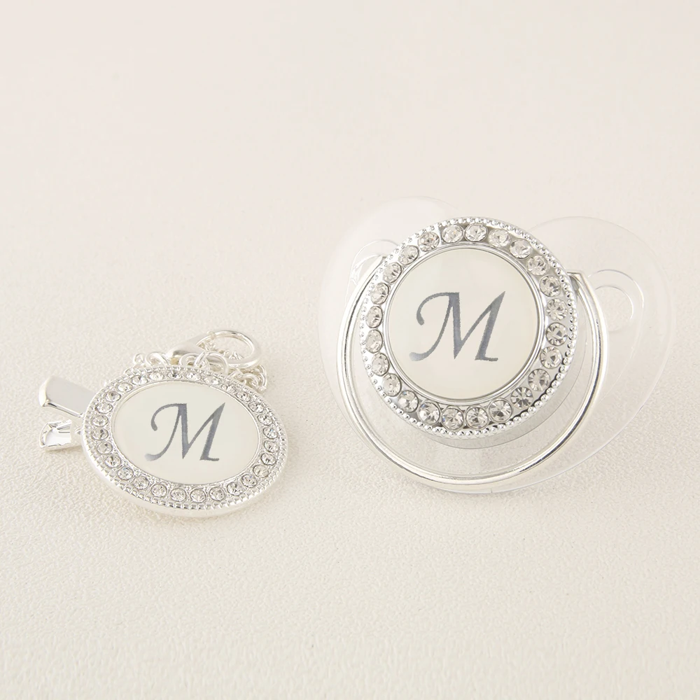 Прозрачная Серебряная Детская Соска с 26 инициалами имени и зажимами 0-12 месяцев без бисфенола