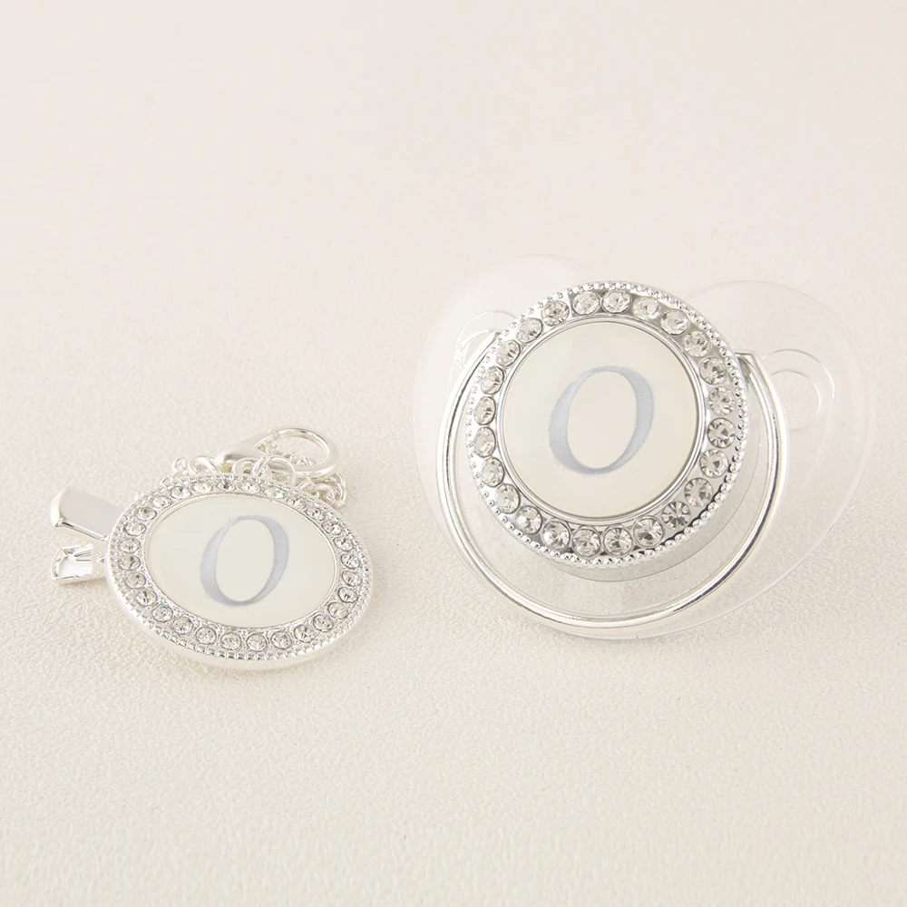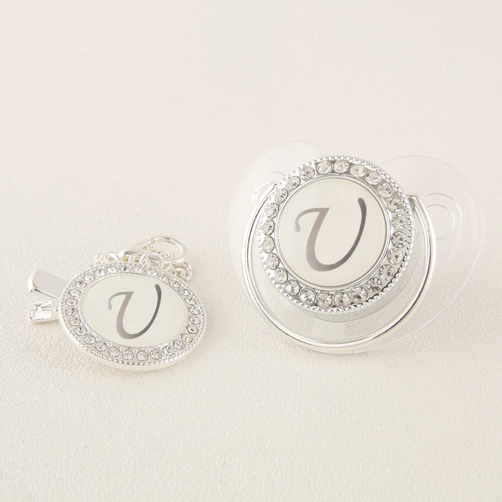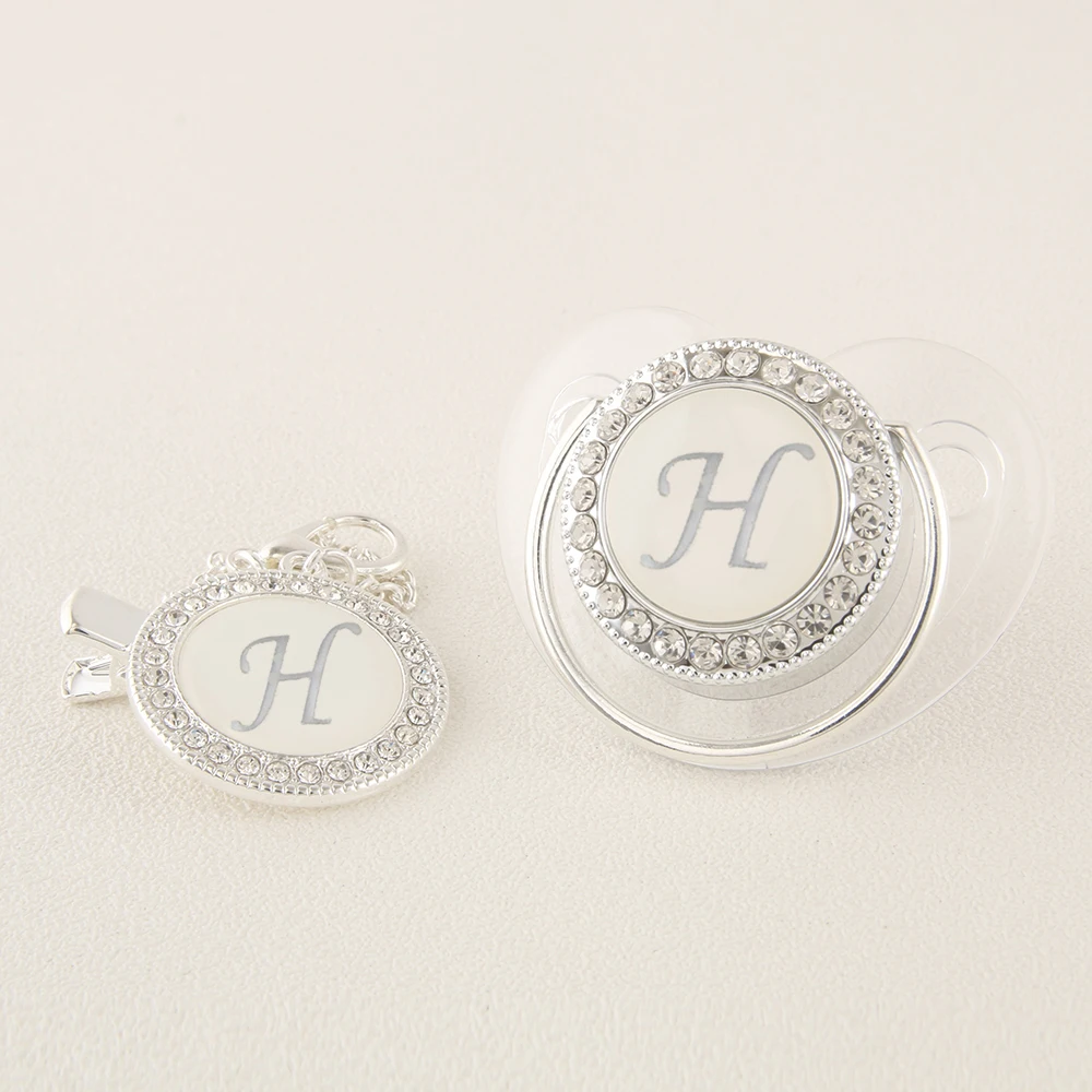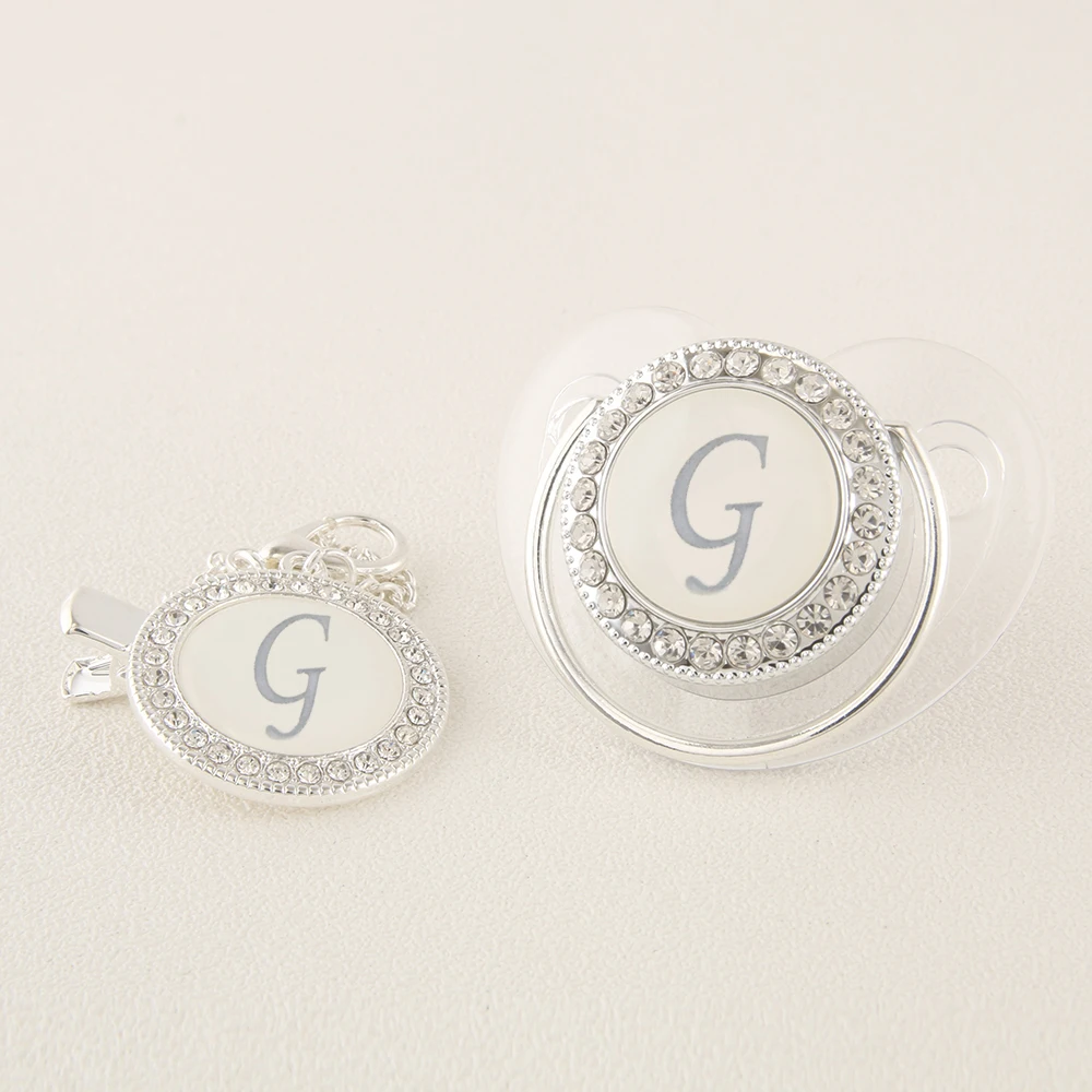 Прозрачная Серебряная Детская Соска с 26 инициалами имени и зажимами 0-12 месяцев без бисфенола