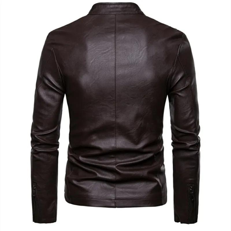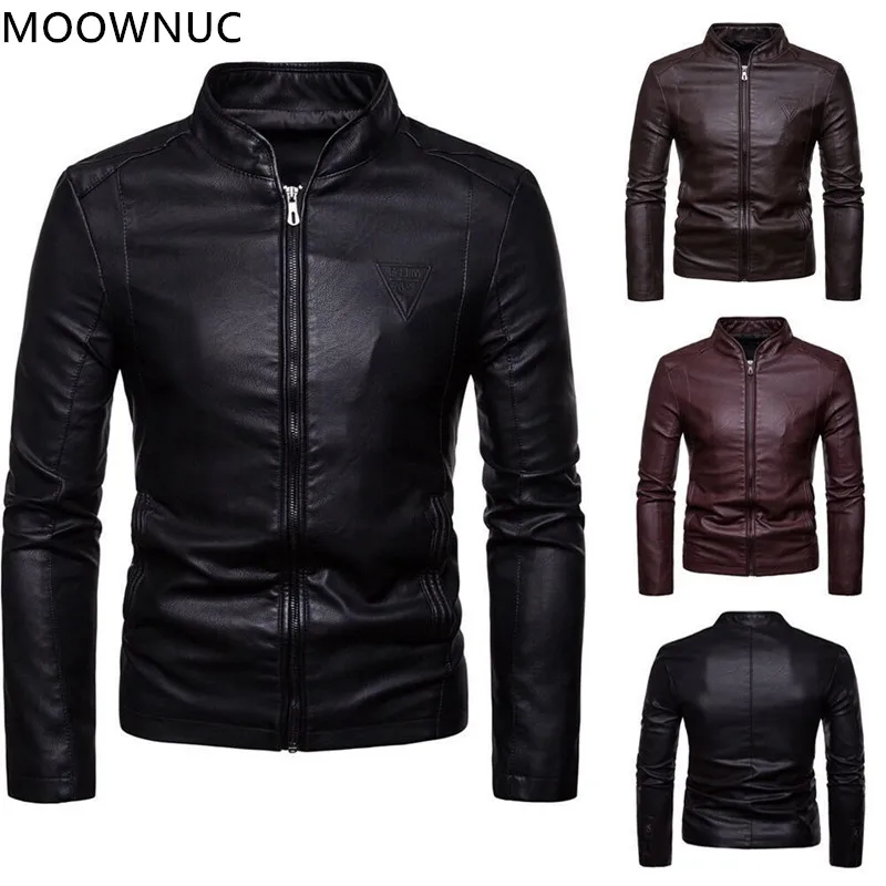 Новинка Осень-зима 2021, Мужская модная кожаная куртка с воротником-стойкой, Мужская Высококачественная куртка с длинным рукавом, размеры M-4XL