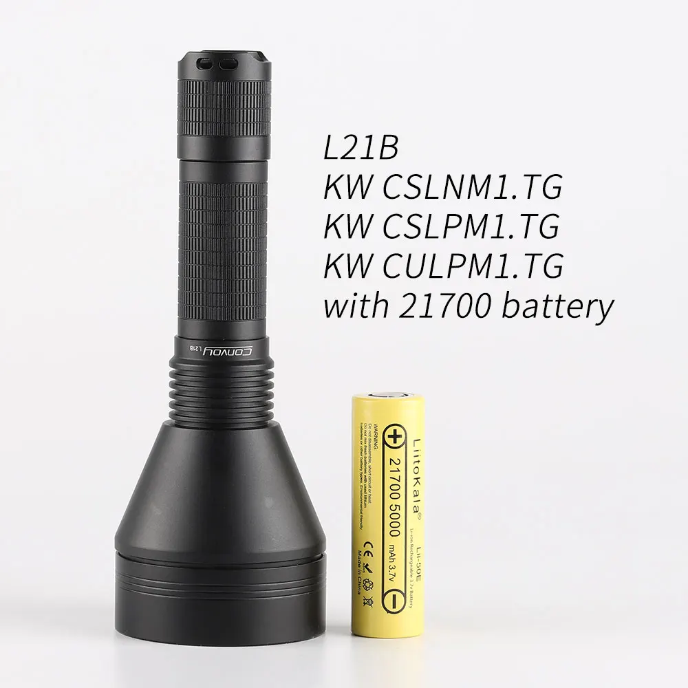Фонарик Convoy L21B KW CSLNM1.TG,KW CSLPM1.TG,KW CULPM1.TG, 21700, легкий, большой радиус действия, с батареей 21700