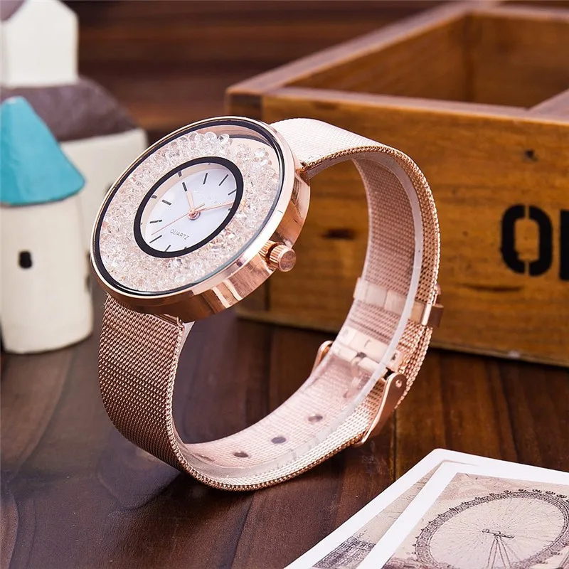 Женские кварцевые часы с сетчатым браслетом, цвет: золото, розовое золото и серебро