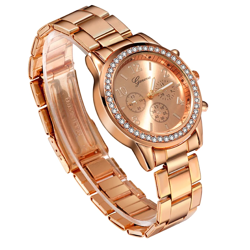 Часы наручные женские классические, роскошные в стиле Geneva с браслетом из розового золота