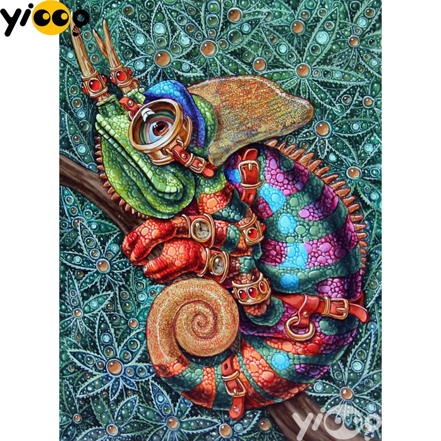 Алмазная мозаика Хамелеон Стразы, картина с квадратнымикруглыми стразами, вышивка крестиком, домашний декор, подарок AX2332