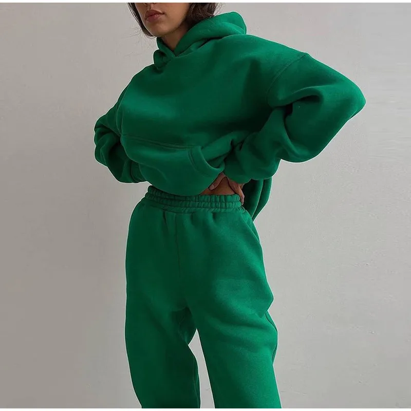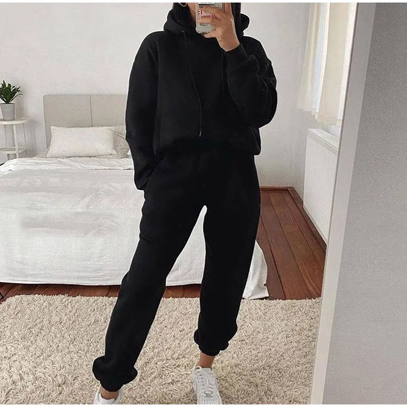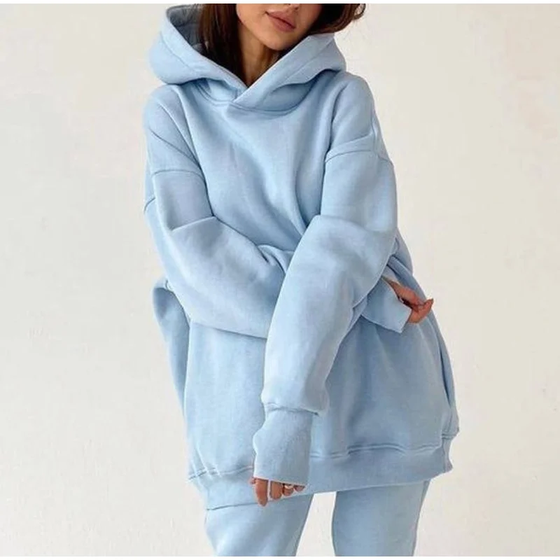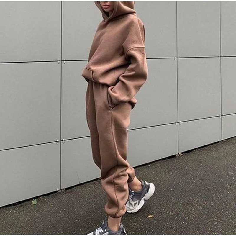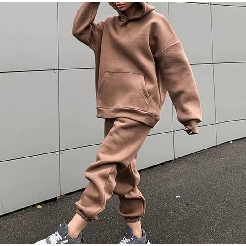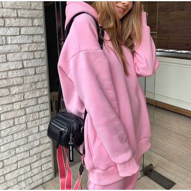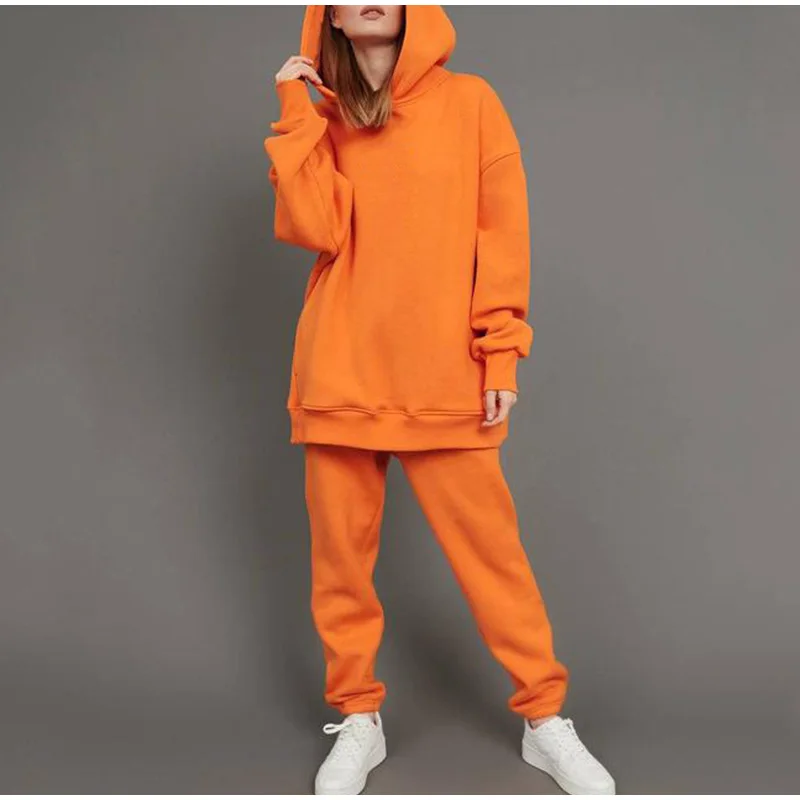 Женский однотонный флисовый комплект из двух предметов, зимний Повседневный женский спортивный костюм с длинным рукавом, Женский костюм с капюшоном, спортивный костюм большого размера с брюками