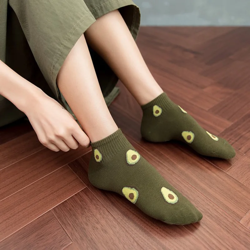 Носки женские хлопковые короткие, с принтом авокадо, летние