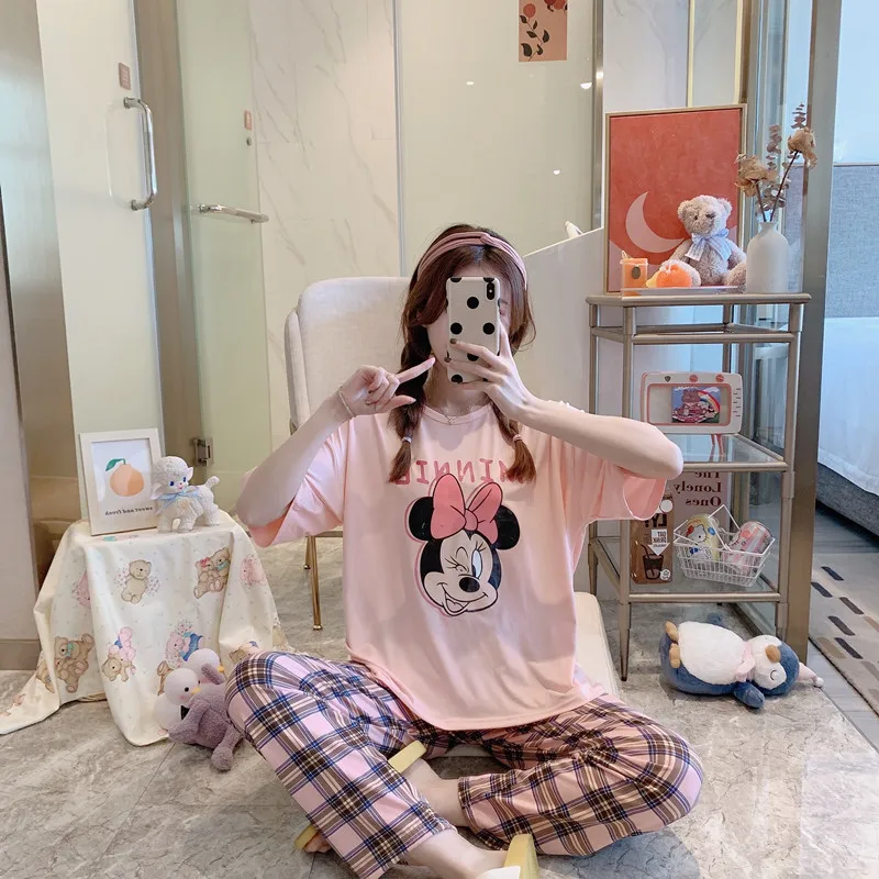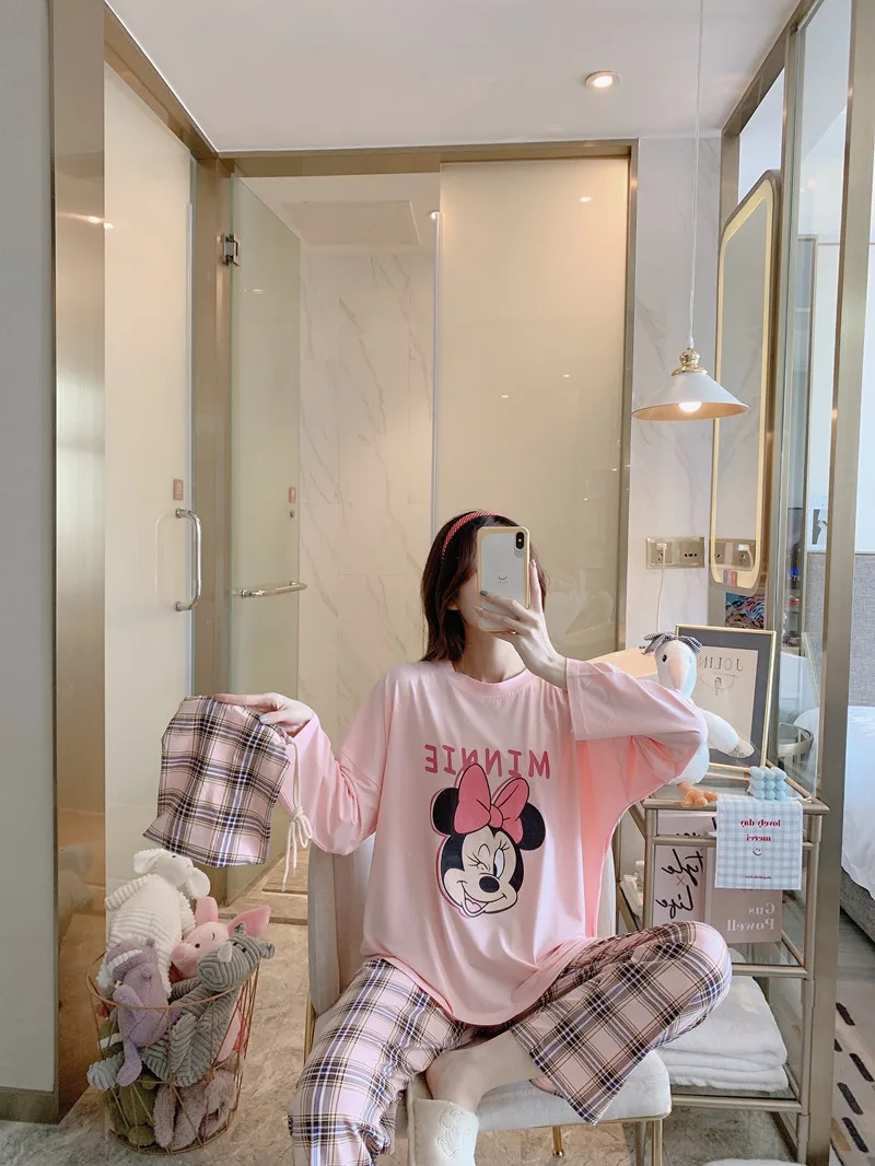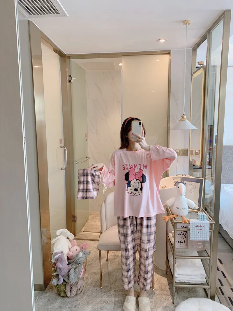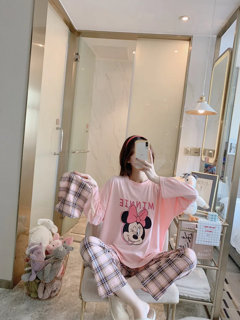 Мультяшные пижамы Disney, Микки, Минни, Стич, медведь, животные, парные пижамы, Хлопковая женская пижама с длинным рукавом для женщин