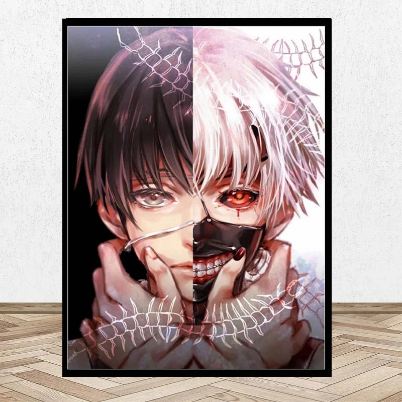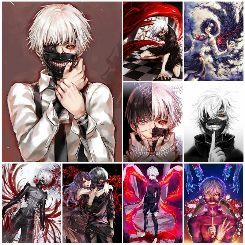 Полноразмерная квадратнаякруглая темная алмазная живопись, Постер Токийский Гуль, канеки Кен с красными глазами, мозаика, вышивка крестиком, ручная работа, художественное оформление
