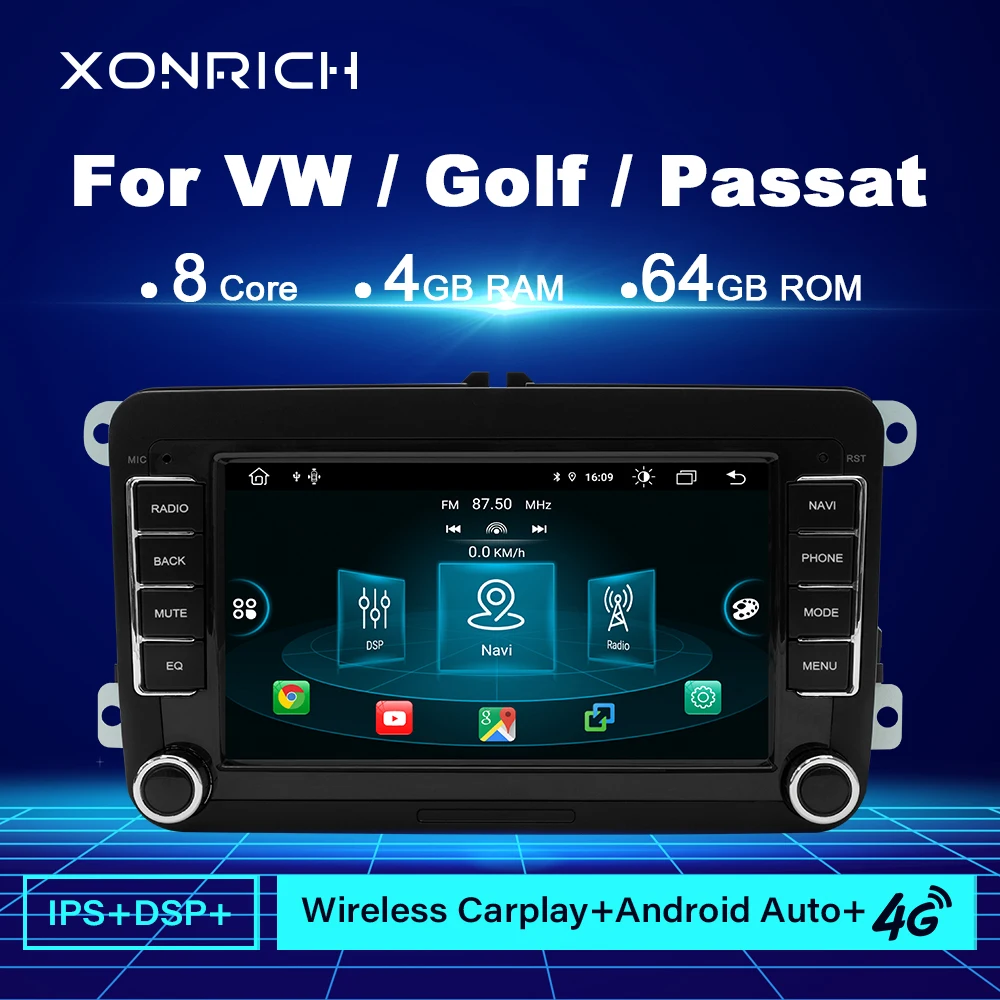 Автомагнитола Carplay, мультимедийный плеер на Android 11, с GPS, DSP, для VWVolkswagenGolfPassatb7b6SkodaSeatOctaviaPoloTiguan, типоразмер 2 Din