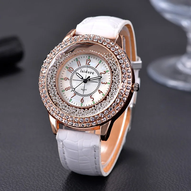 Модные женские часы Стразы с кожаным ремешком, кварцевые часы, женс...