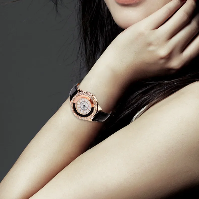 Runer женские Стразы, роскошные кожаные Брендовые женские часы, хит продаж, модное женское платье, Relogio Feminino, бесплатная доставка