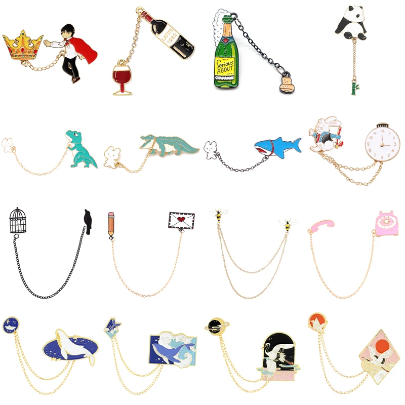 Креативная мультяшная цепочка с подвеской Съемная эмалированная брошь животное панда КИТ птица солнце любовь Вино Шампанское корона сплав булавки ювелирные изделия