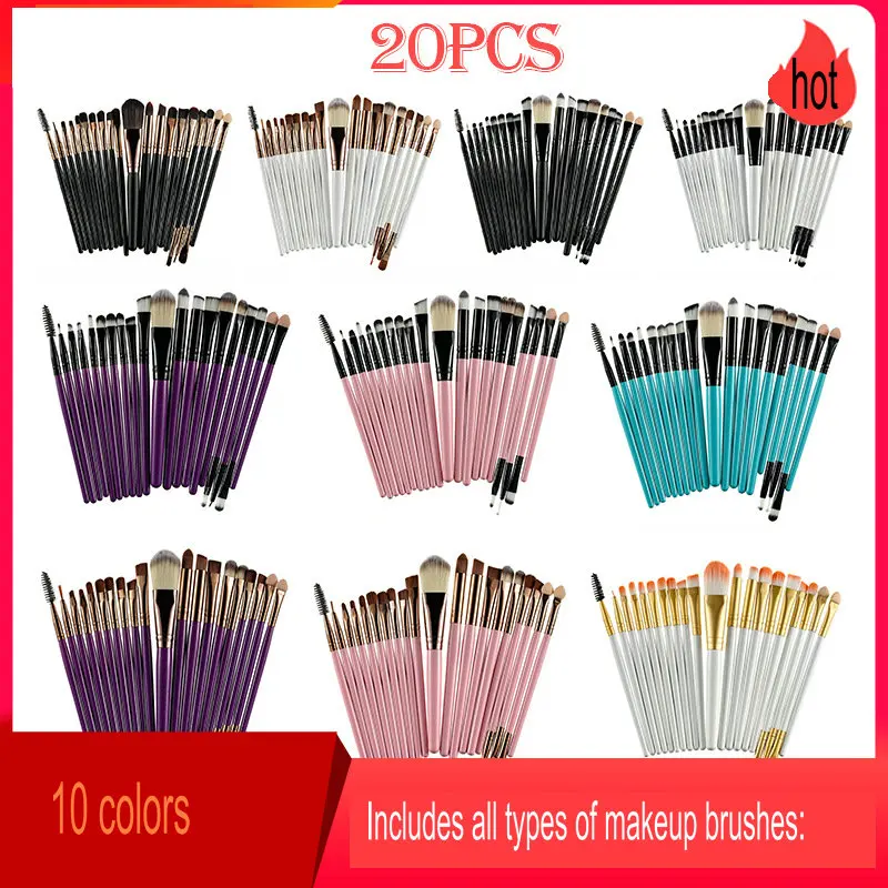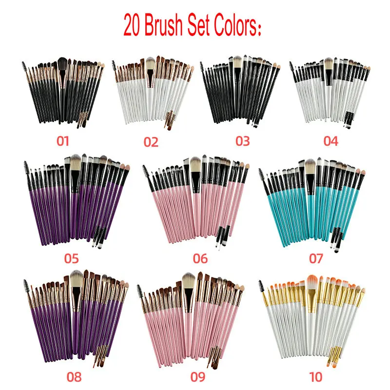 SOPOLISH 20 шт., портативный косметический инструмент с деревянной ручкой, полный набор мягких кистей для теней для век с длинной ручкой