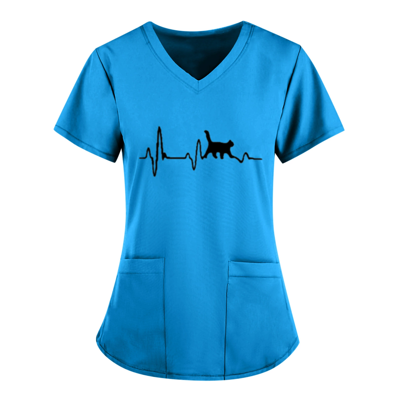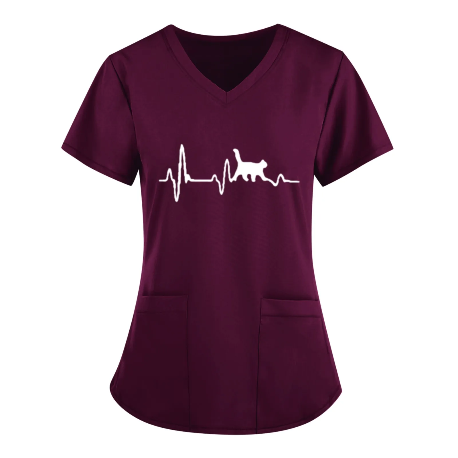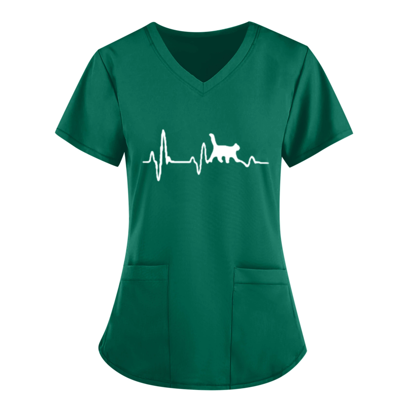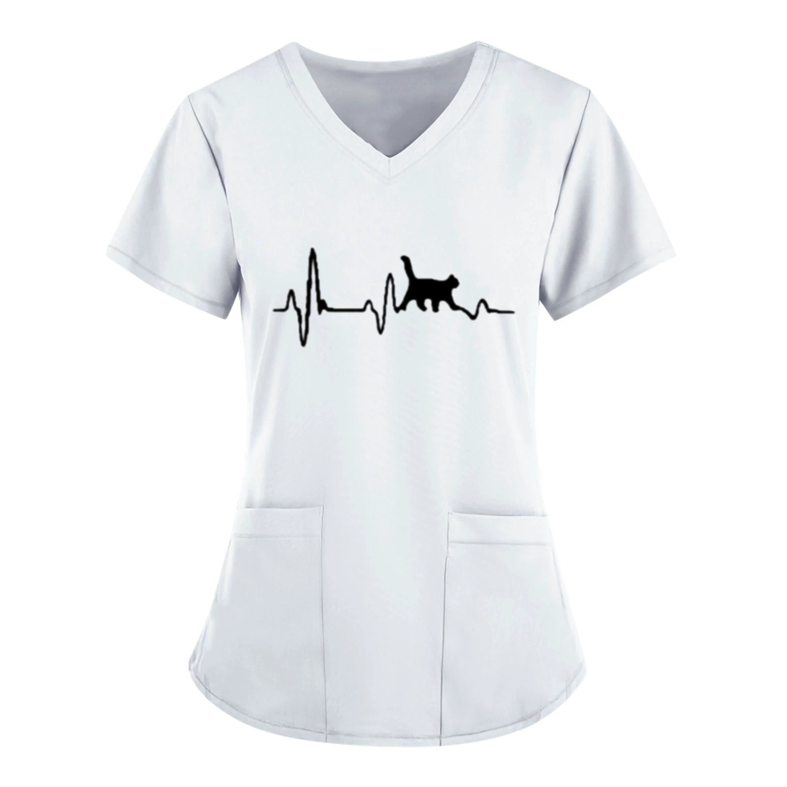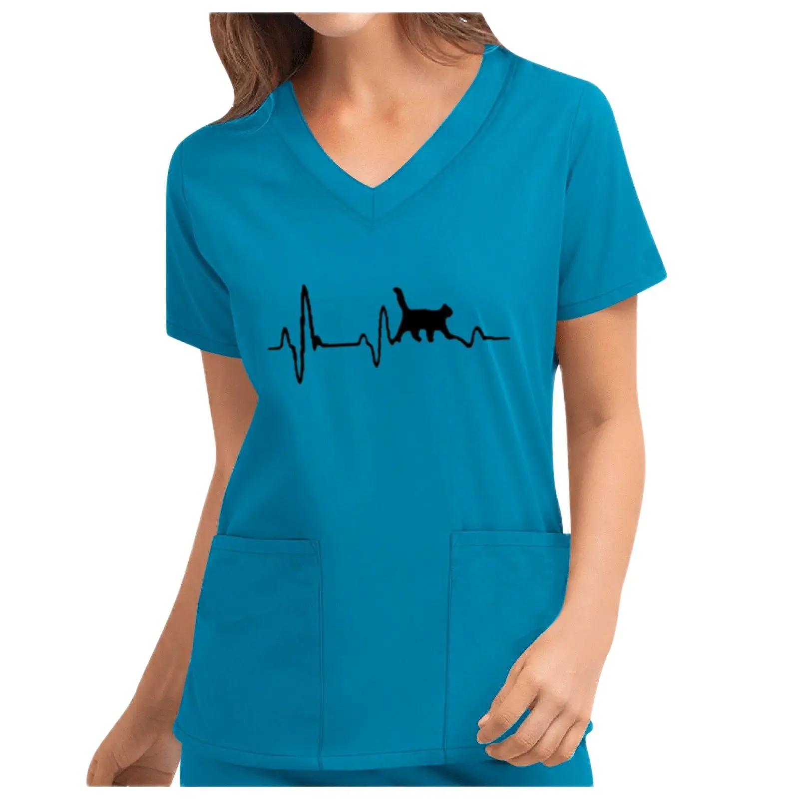 Женская блузка с коротким рукавом, V-образным вырезом и принтом ЭКГ