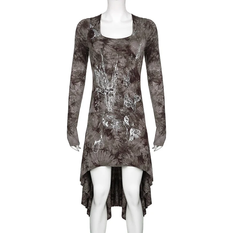 Платье-мини с длинным рукавом и принтом, в готическом стиле