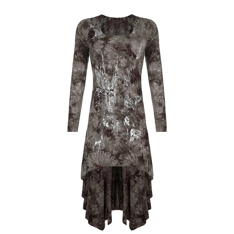 Женское платье с длинным рукавом, готическое облегающее платье с принтом, 2021