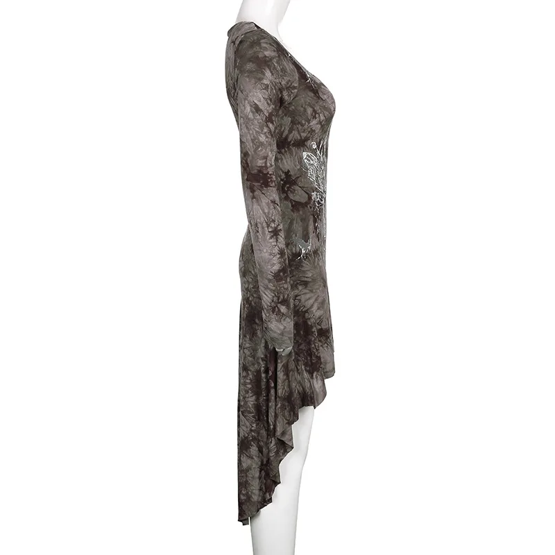 Женское мини-платье в стиле гранж Rockmore, с принтом в стиле темно...