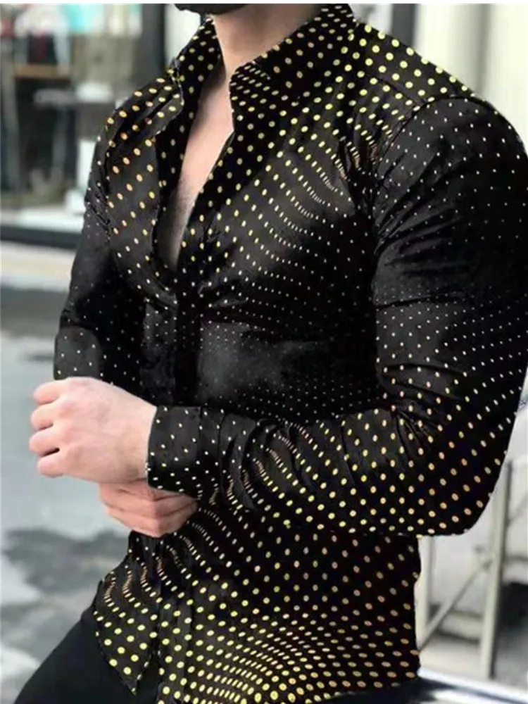 Мужская рубашка в горошек, с длинным рукавом и отложным воротником