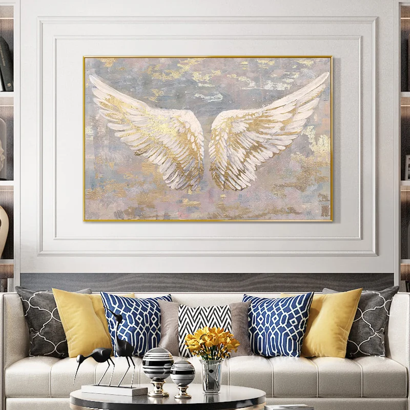 Современная модная Масляная картина с крыльями золота, белые крылья ангела, роскошный постер, Настенная картина, домашний декор