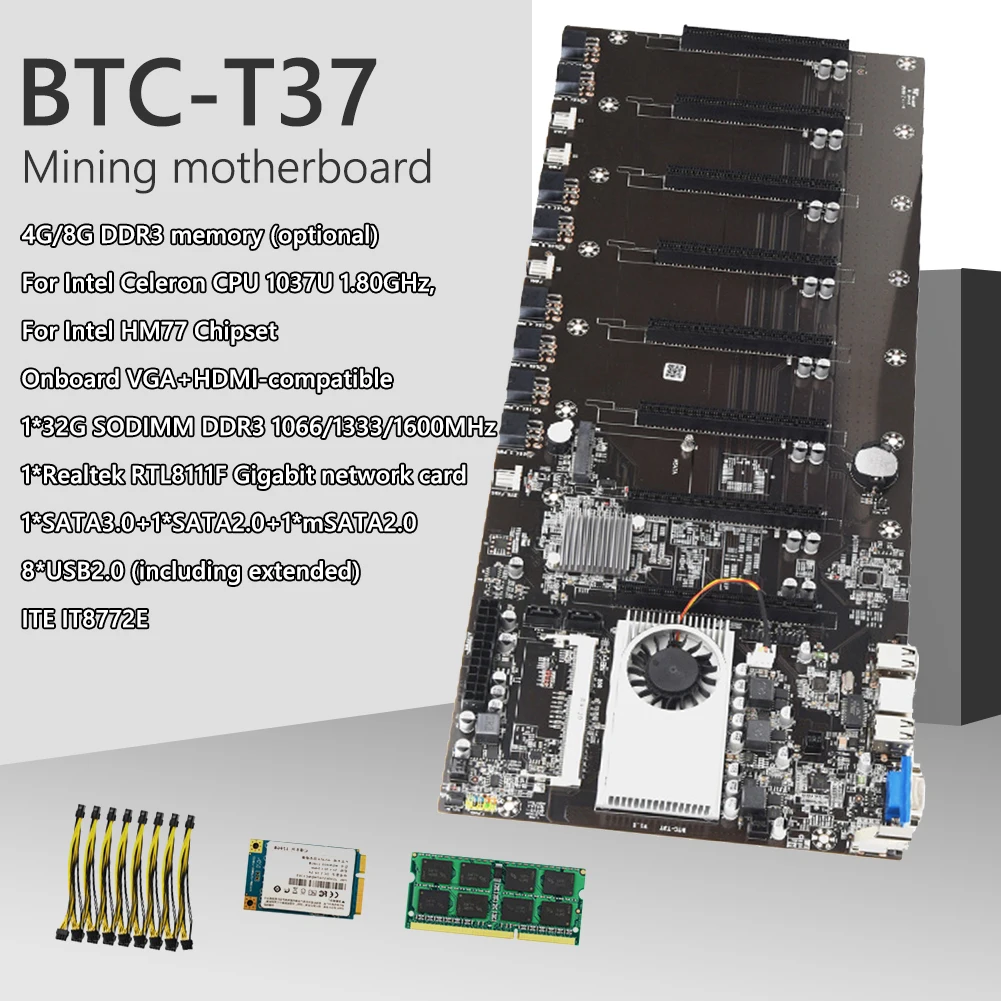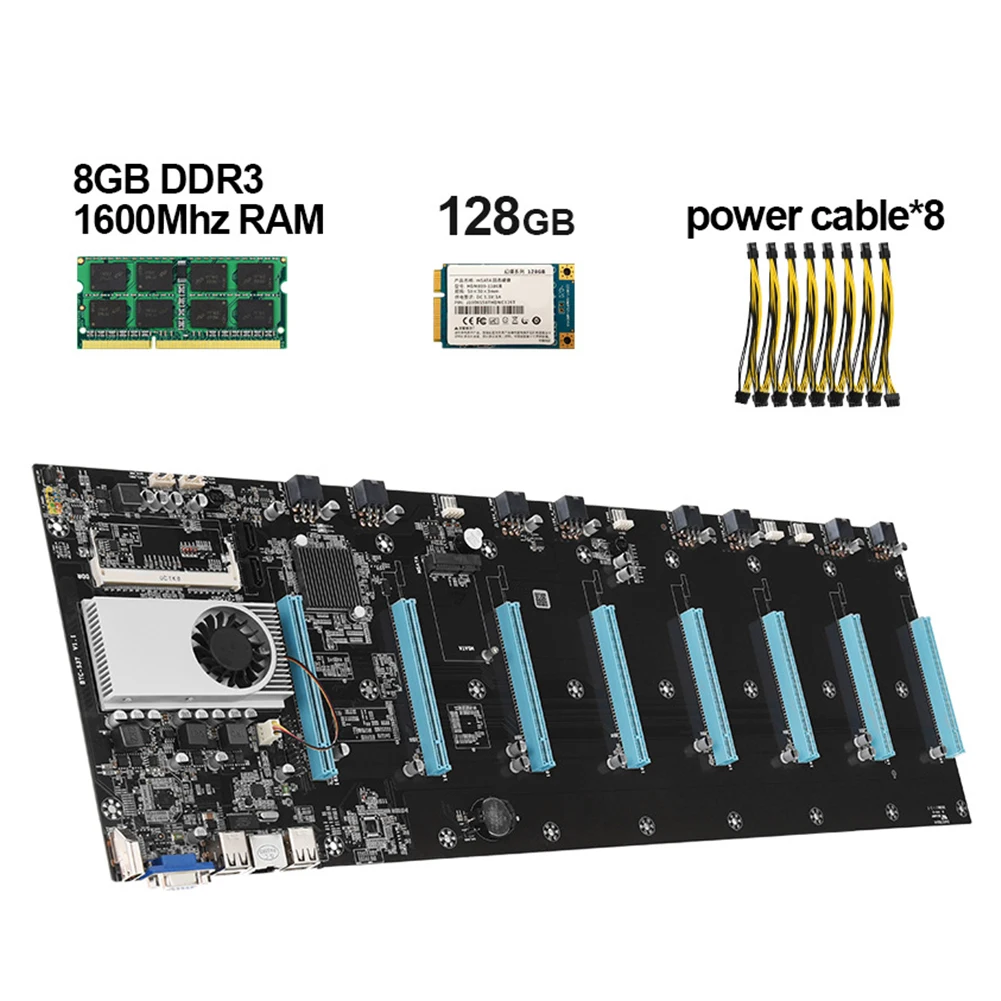 BTC-S37 575 мм настольный компьютер добыча материнская плата комплект 8x PCI Express 16X DDR3 SODIMM Майнер доска с Процессор 128 г MSATA 8 Pin Кабель-адаптер