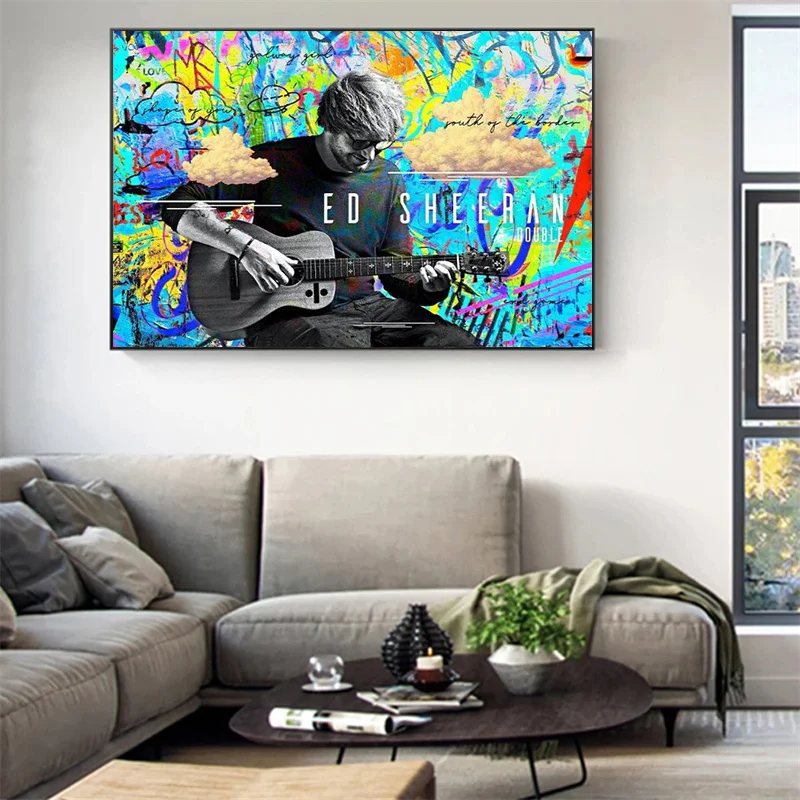 Певица звезда Эд Ширан Искусство Холст Живопись персонаж граффити Искусство Плакат и печать Куадрос Настенная картина для комнаты украшение дома