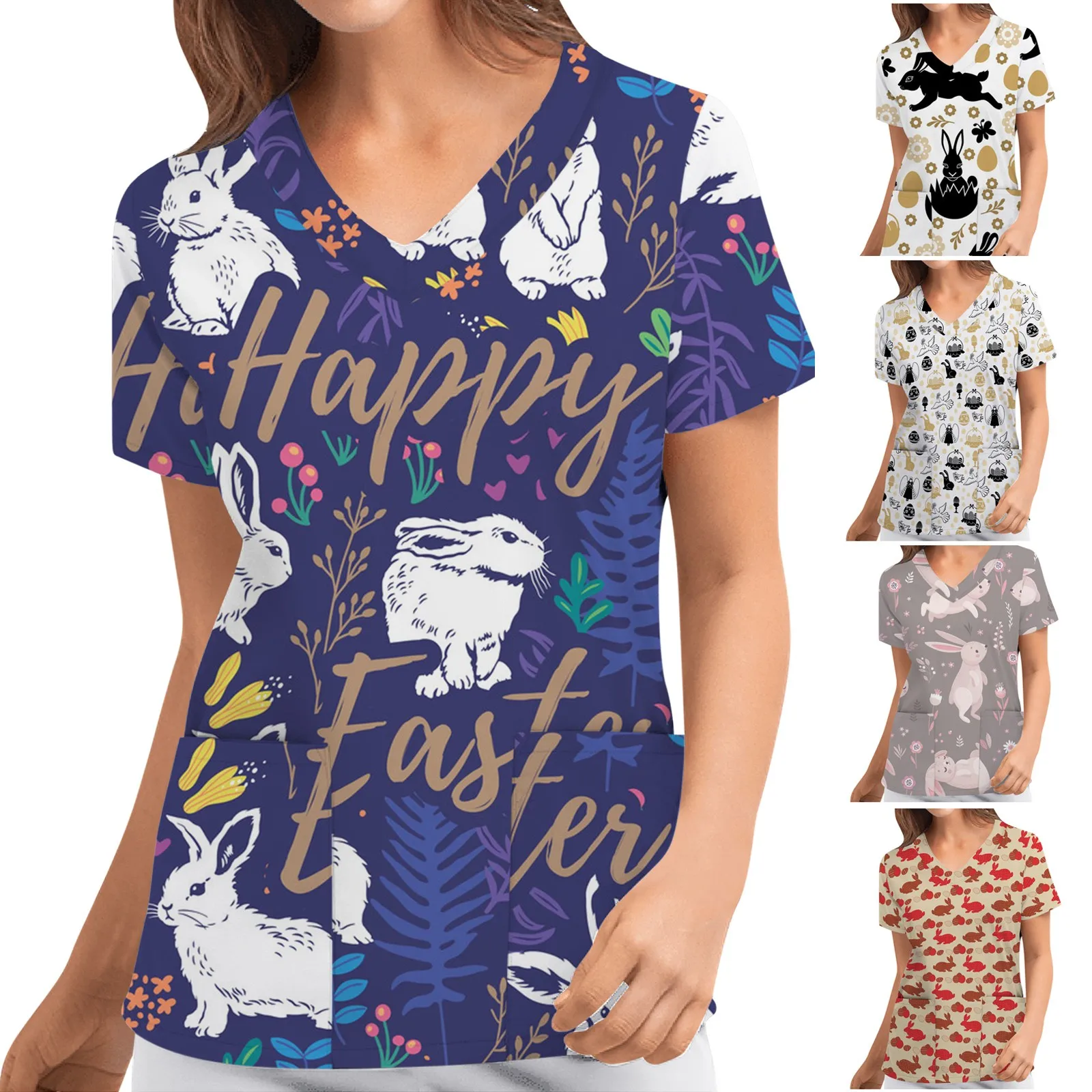 Пасхальный кролик печати Рабочая скрабы Топы уход за домашними живо...
