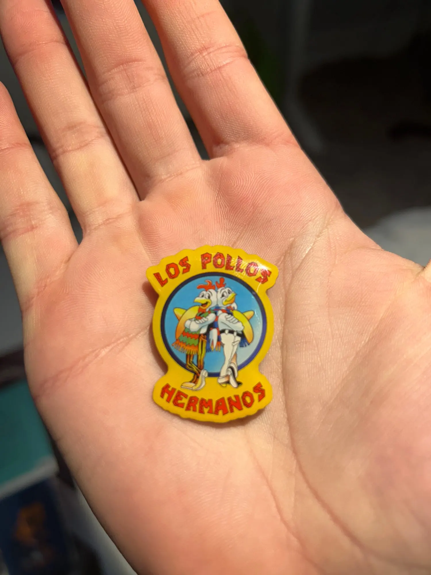 Металлическая брошь с логотипом магазина жареной курицы из сериала во все тяжкие
