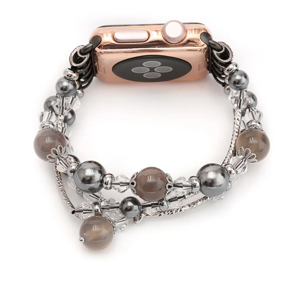 [Материал изделия] Он изготовлен из агата, хрусталя, жемчуга и эластичной нити и оснащен линейкой Apple Watch. Ремешок ручной работы.