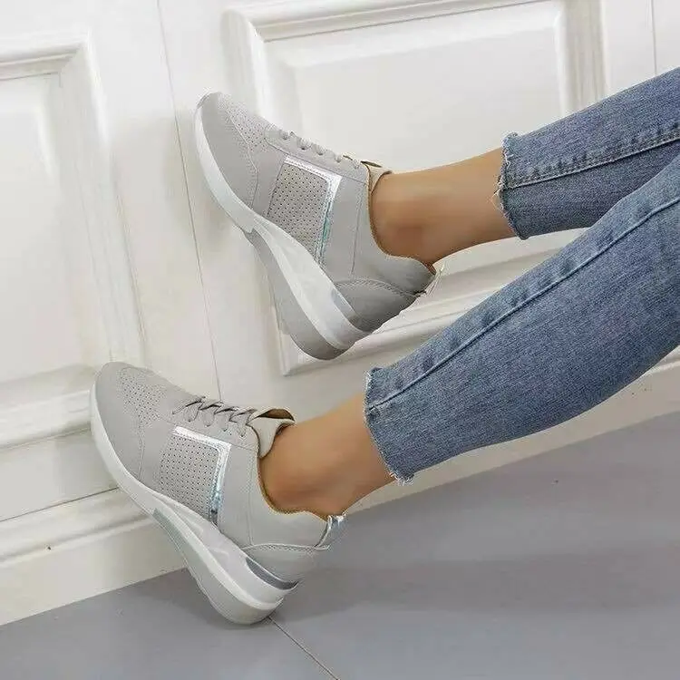 Женские кроссовки на танкетке, блестящие кроссовки на платформе, женская обувь размера UK