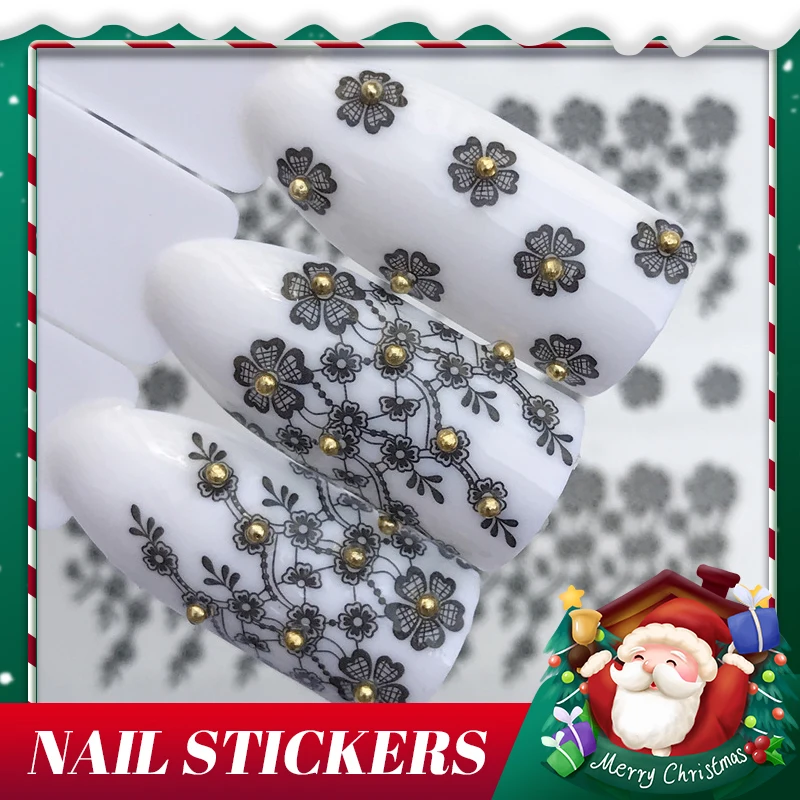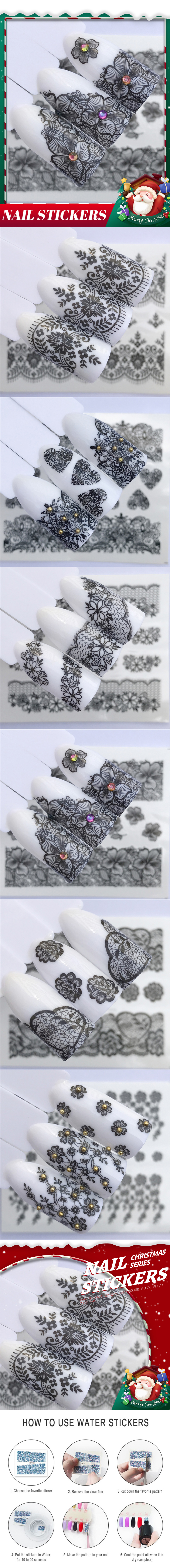 Лидер продаж 2021, черная наклейка для ногтей с водяным знаком, наклейка для ногтей, наклейка для ногтей, сексуальная черная форма Кружева, декоративная наклейка для ногтей