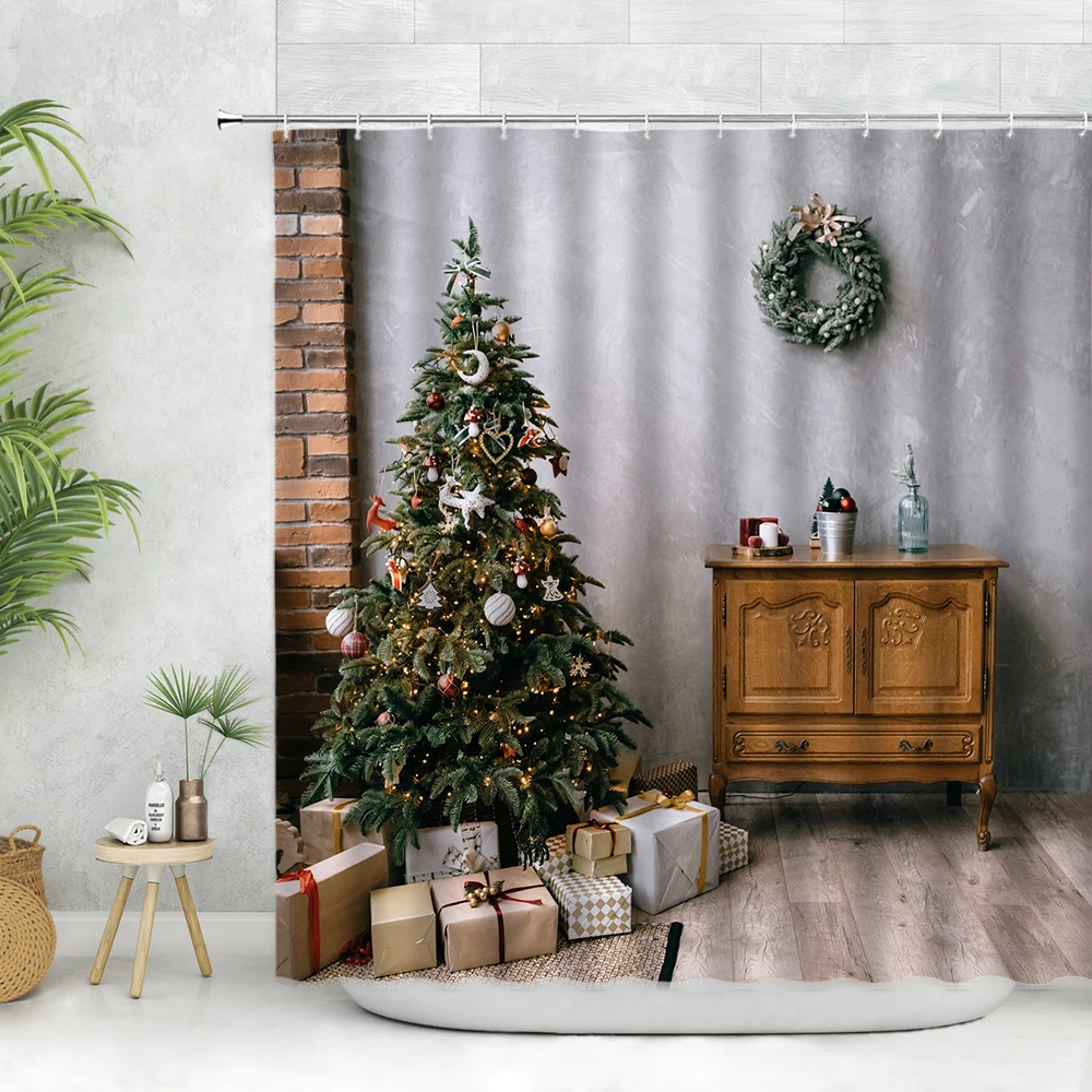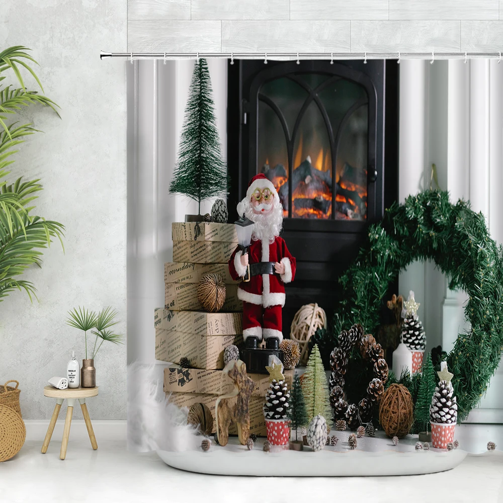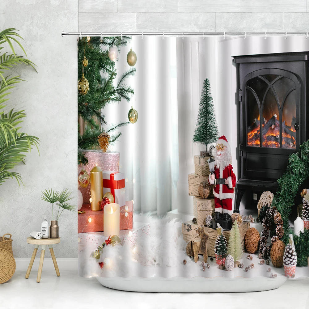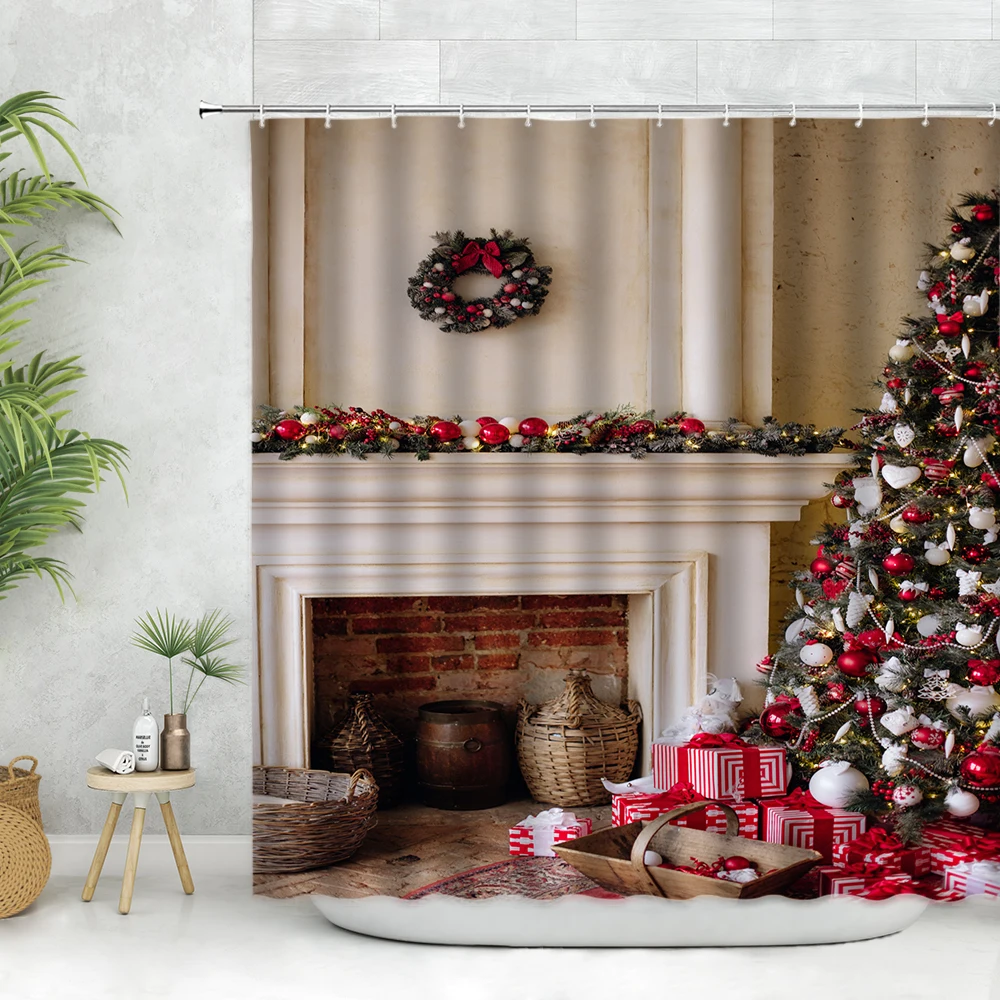 Набор рождественских занавесок для душа, камин на елку, зимний фестиваль, красный Рождественский шар, Декор, Настенная ткань, подарок, ванной