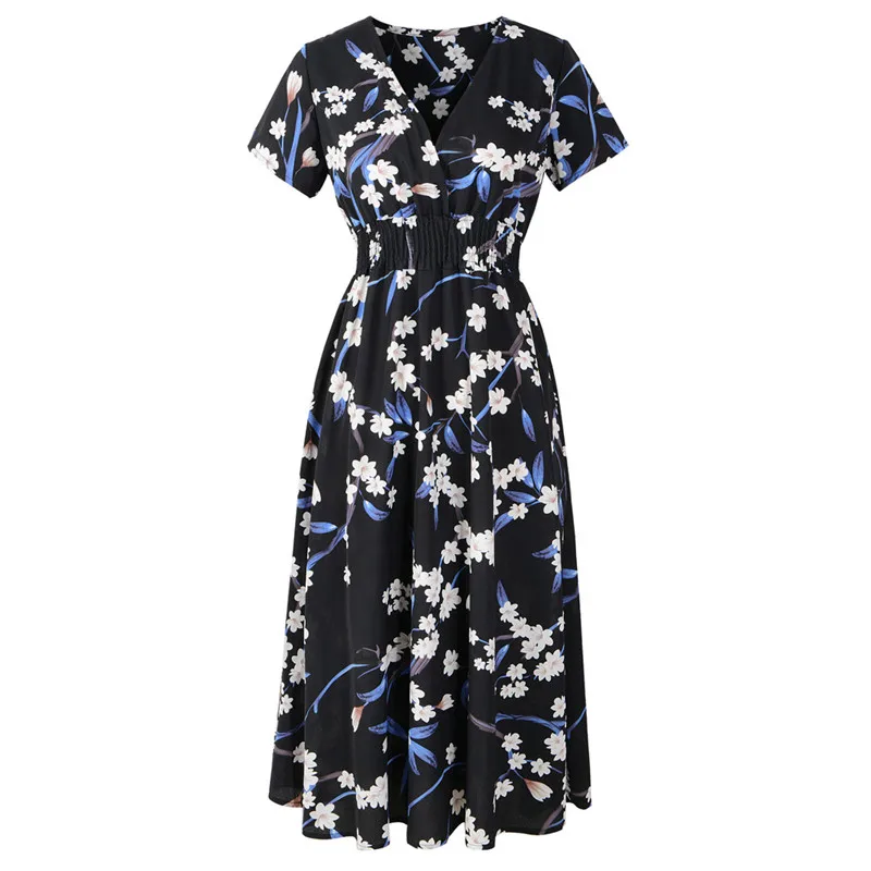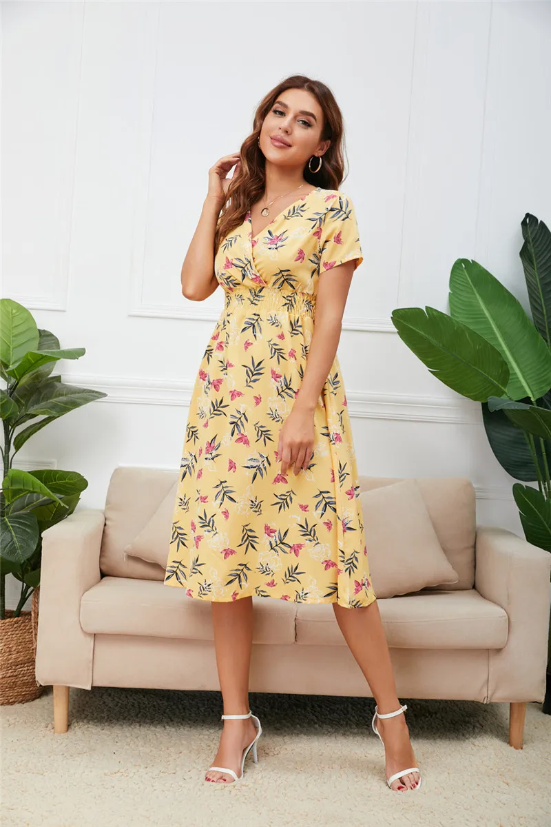 Женское шифоновое платье-миди с цветочным принтом, с эластичным поясом