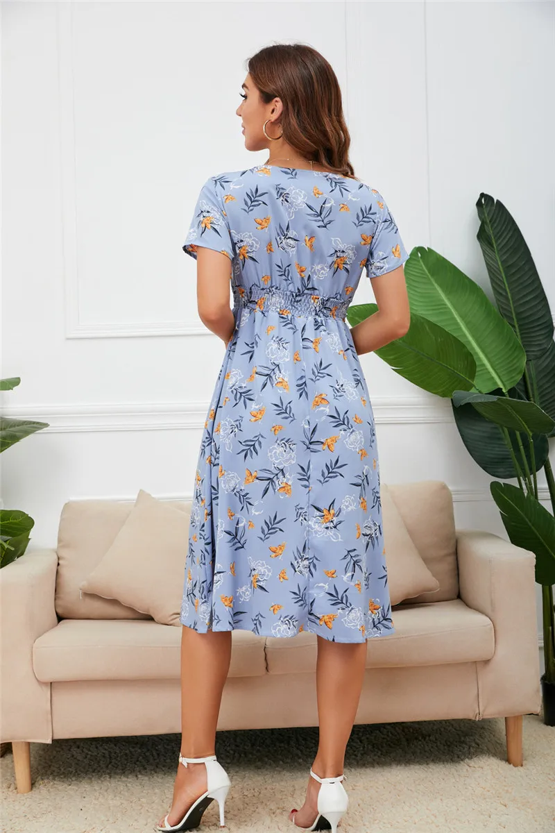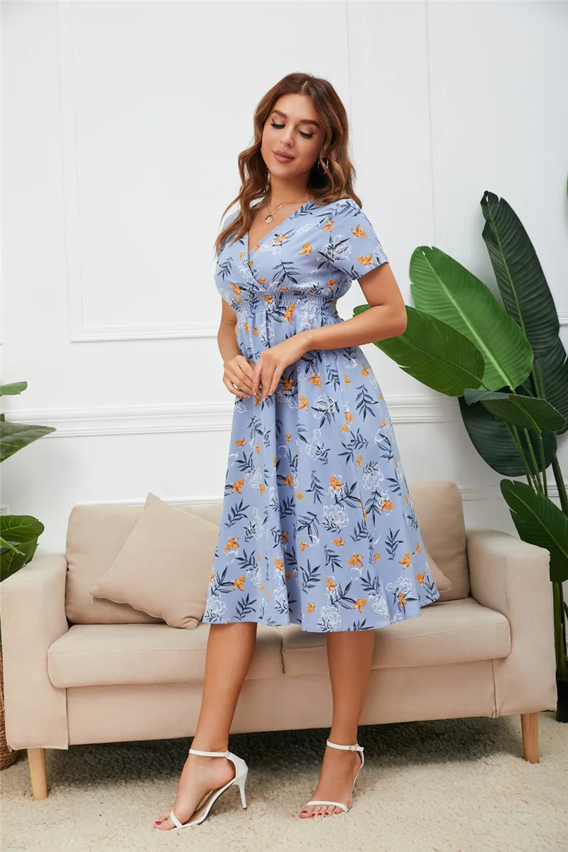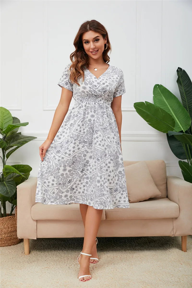 Повседневное шифоновое платье-миди в стиле бохо, с эластичной талие...