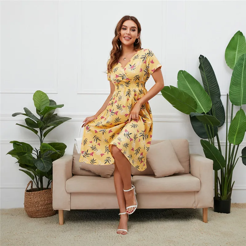 Новое летнее женское платье 2021, повседневное, с эластичной талией...