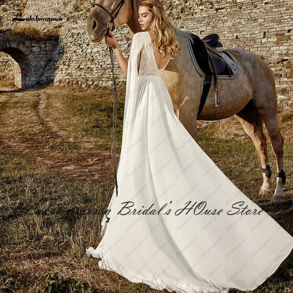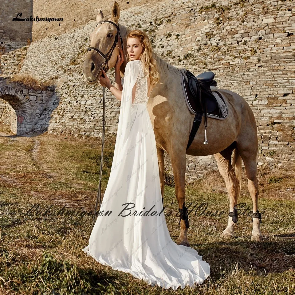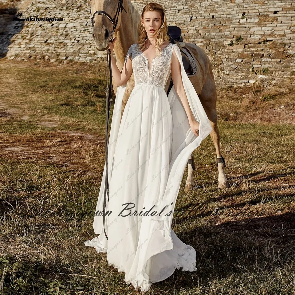 Белое платье в стиле бохо Lakshmigown Свадебные платья длинная шифоновая накидка 2022 Robe Mariee Courte A Line Свадебные платья с открытой спиной