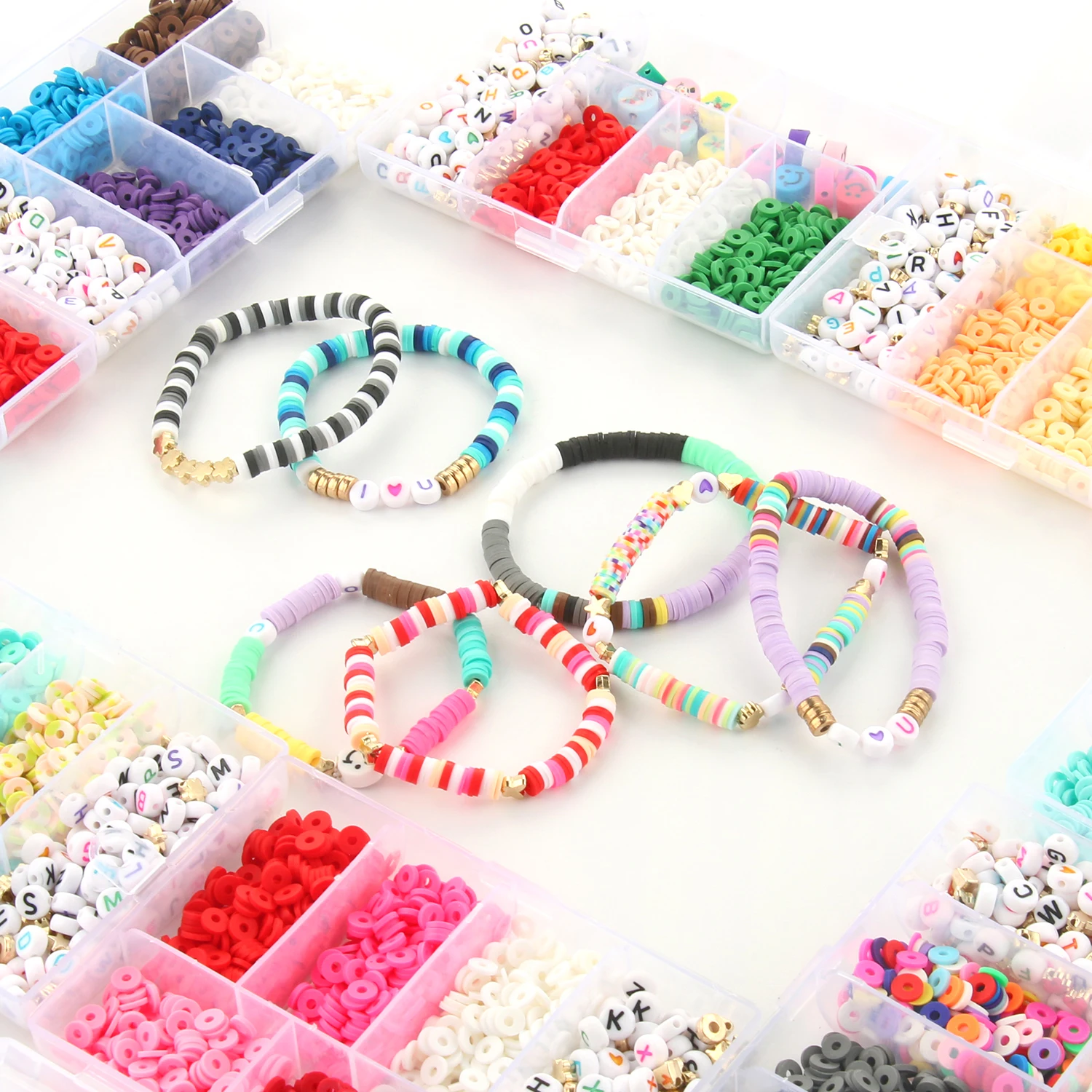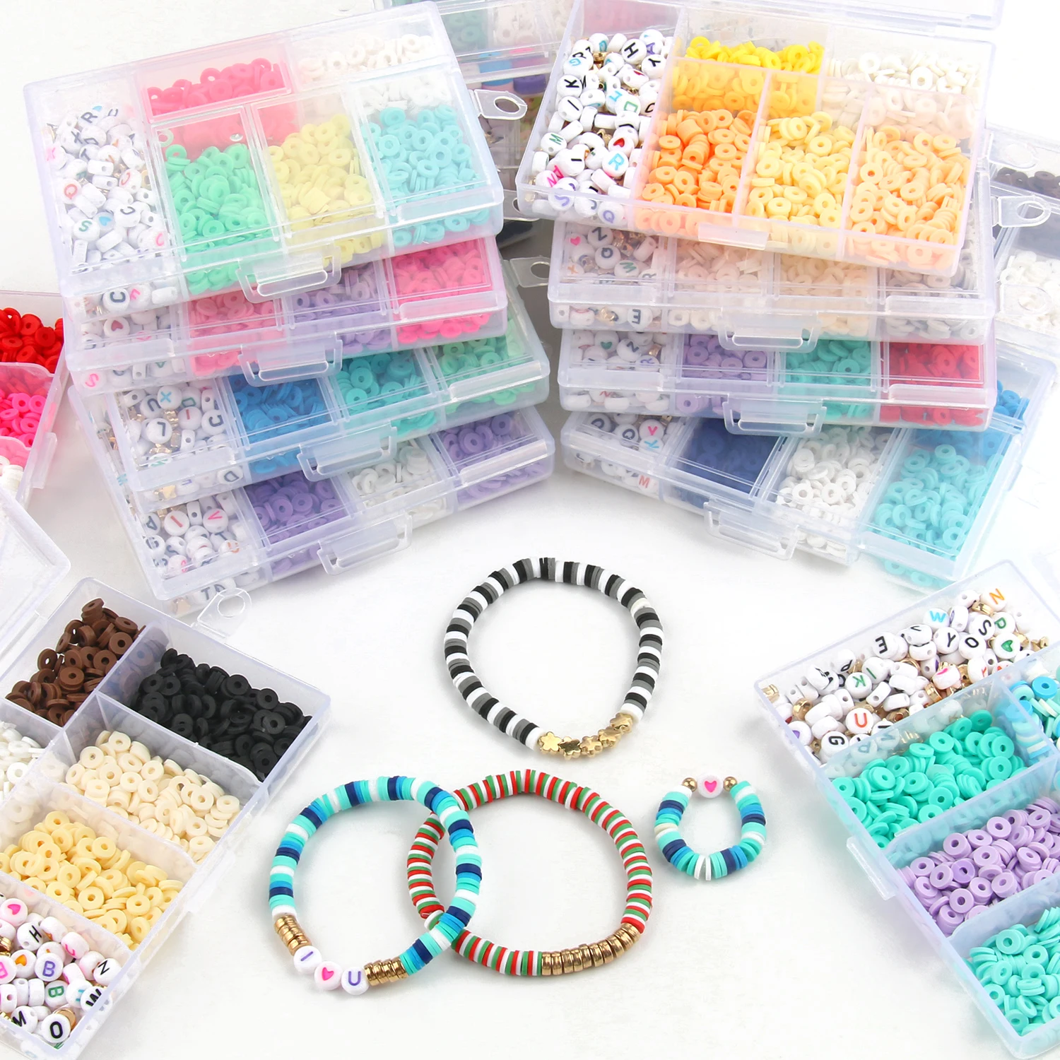 Разноцветные акриловые бусины 6 мм, коробка для бусин из глины, эластичный шнур для рукоделия, браслетов, материалы для изготовления ювелирных изделий