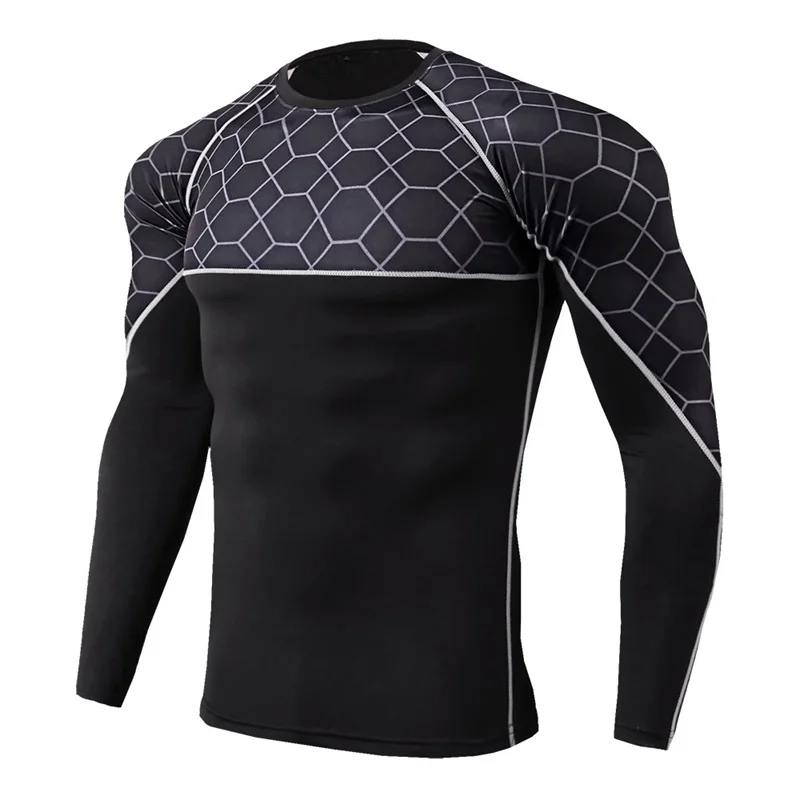 Футболка мужская Спортивная с длинным рукавом, компрессионная Облегающая рубашка для бега и тренировок в зале, эластичная, для фитнеса, мужа рашгарда