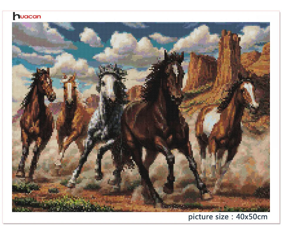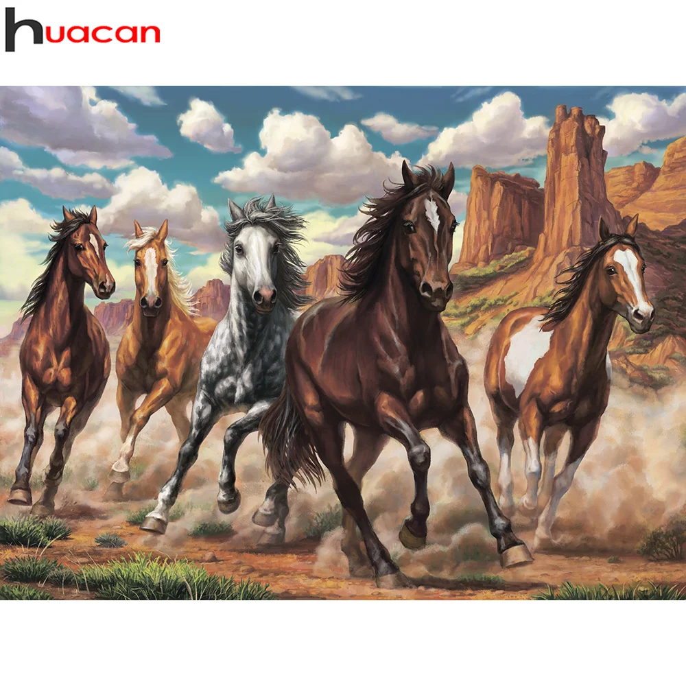 Алмазная живопись 5d Huacan, полная картина с рисунком лошади, домашняя искусственная вышивка животными, вышивка крестиком, настенная наклейка