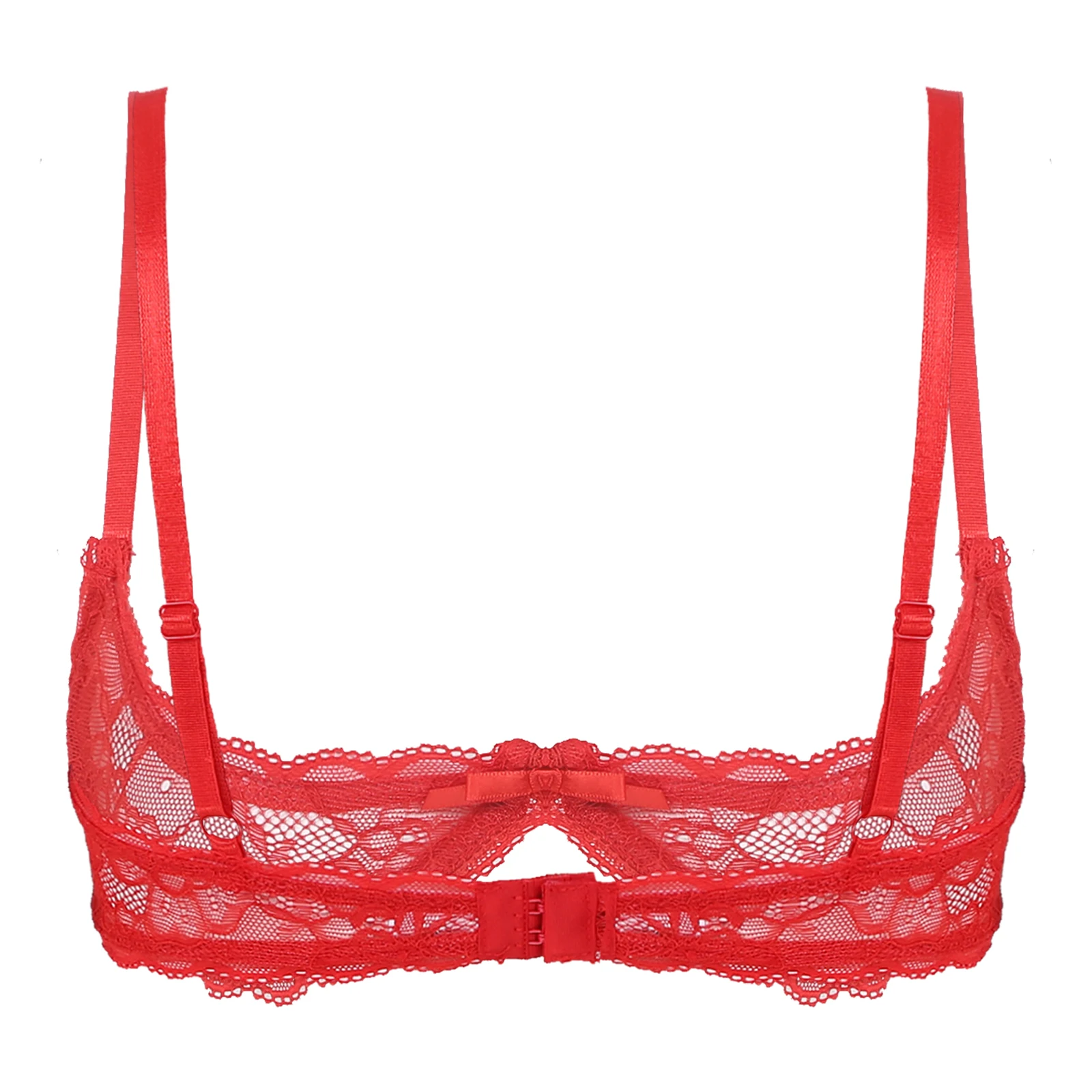 Особенности:Женский прозрачный кружевной бюстгальтер на косточках, привлекательное и очаровательное нижнее белье.Регулируемые бретельки-спагетти, волнистая отделка 1/4 чашки и дизайн на косточках для хорошей поддержки.Задняя сторона 3 ряда с двумя застежками на крючках для надежной фиксации. Дышащая и легкая ткань, удобная в носке.Идеально подходит для романтической ночи, свадебной ночи, лучший подарок на День святого Валентина для себя или ваших любимых.Пожалуйста, проверьте размер перед покупкой, ручная стирка только в холодной воде.